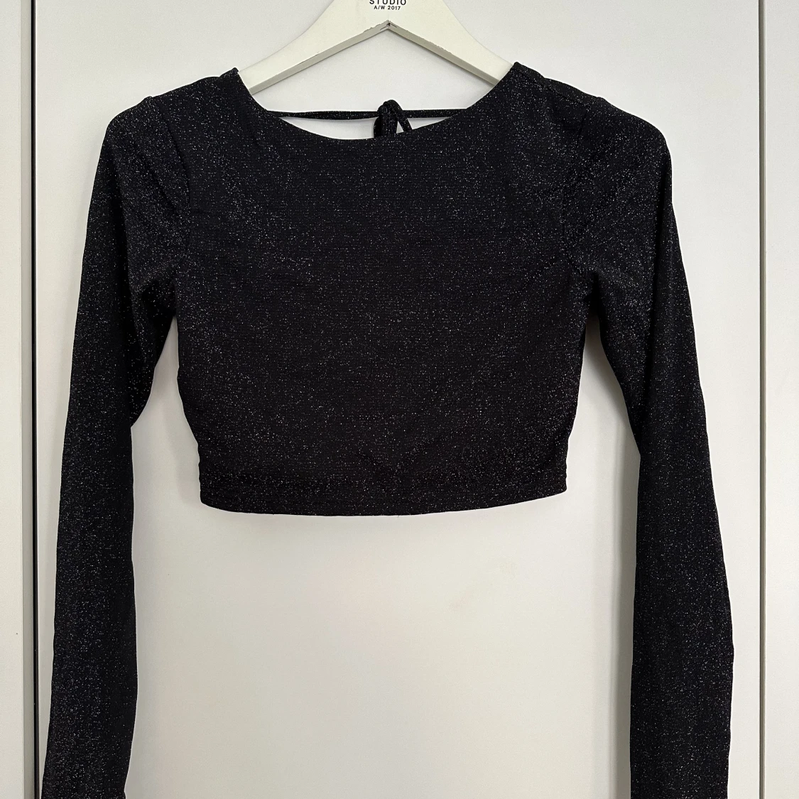 Svart glittrig croptop från NA-KD i storlek S. Öppen rygg
