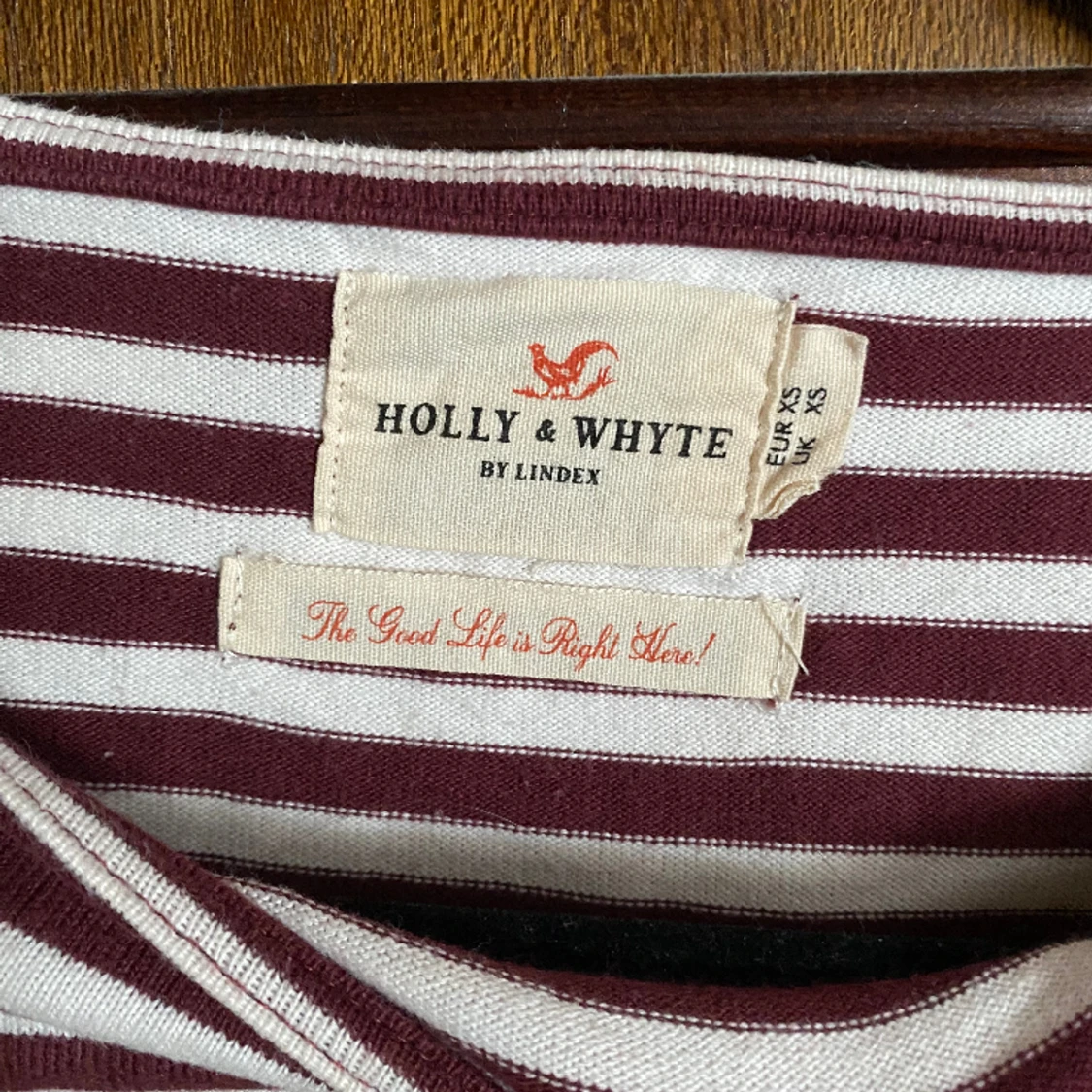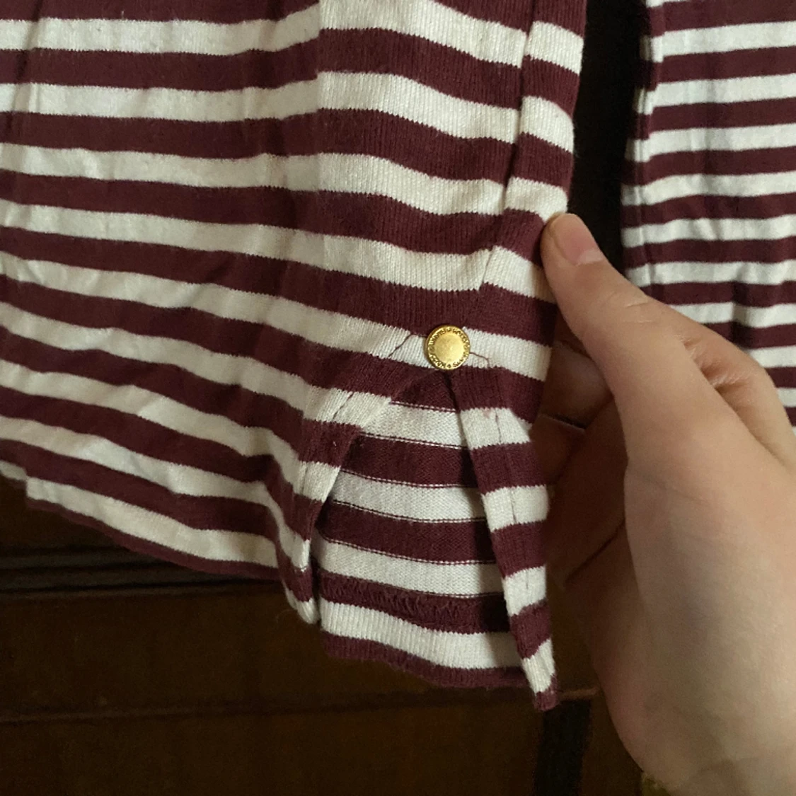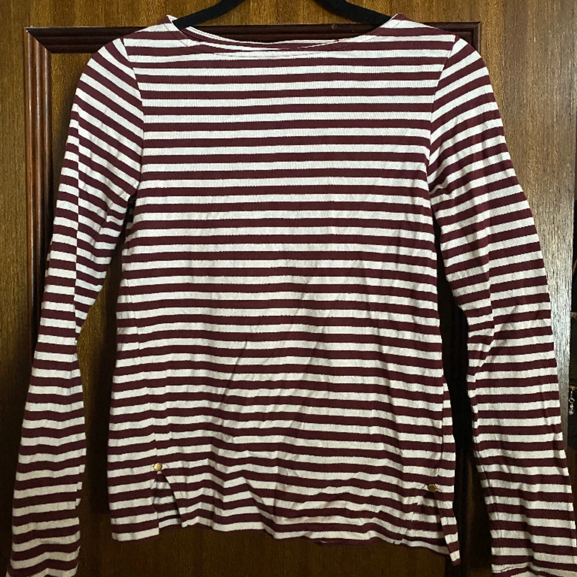 Jätte söt vit, rödvin randig långärmad tröja, mjukt material ochbinte för tjockt eller för tunnt. Har två små slits på varje ände av tröjan🫶🏼