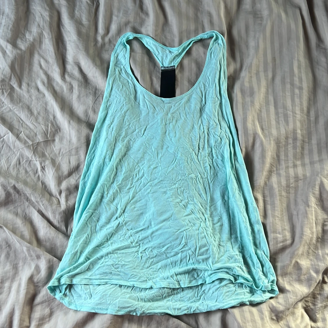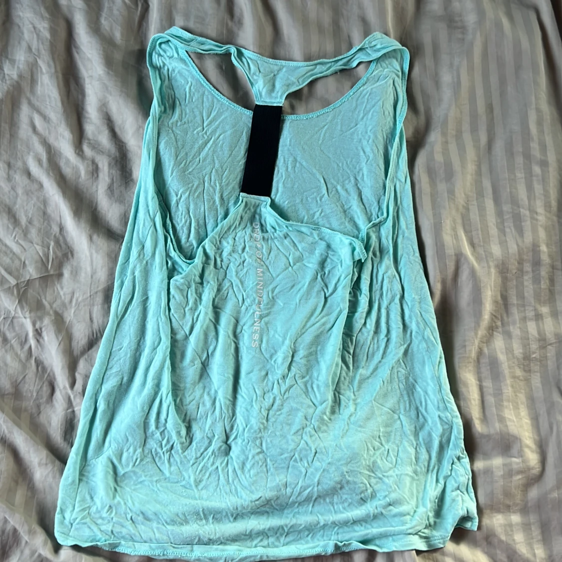 Säljer en turkos linnetopp från Drop of Mindfulness. Toppen har brottarrygg med svart detalj och tryckt logga på ryggen. Tillverkad i mjuk viskos, perfekt för träning eller chill dagar. Enkel och snygg design som är lätt att matcha med tights eller shorts.