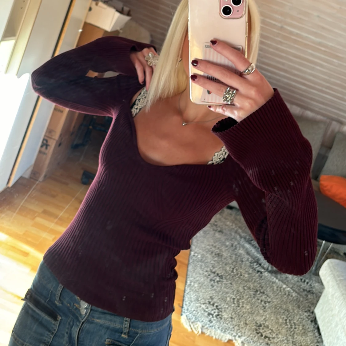 Jättefin vinröd aktig tröja med vida ärmar. Perfekt nu till hösten!!🍁 Använd ett fåtal gånger, så väldigt bra skick!!