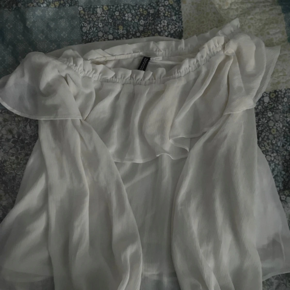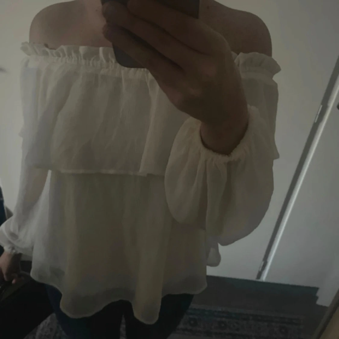 As snygg och söt vit offshoulder blus med volangdetaljer. Perfekt för en somrig/vår look💕🌸