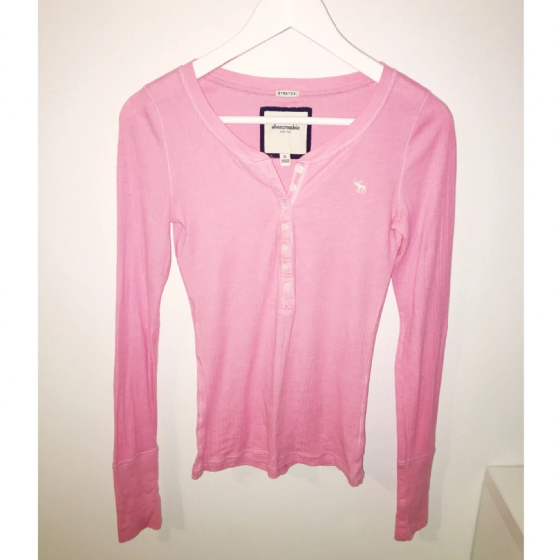Långärmad tröja i ljust rosa från Abercrombie & Fitch, passar från en XS-M i och med stretch. Strl kids XL. Bruksskick.