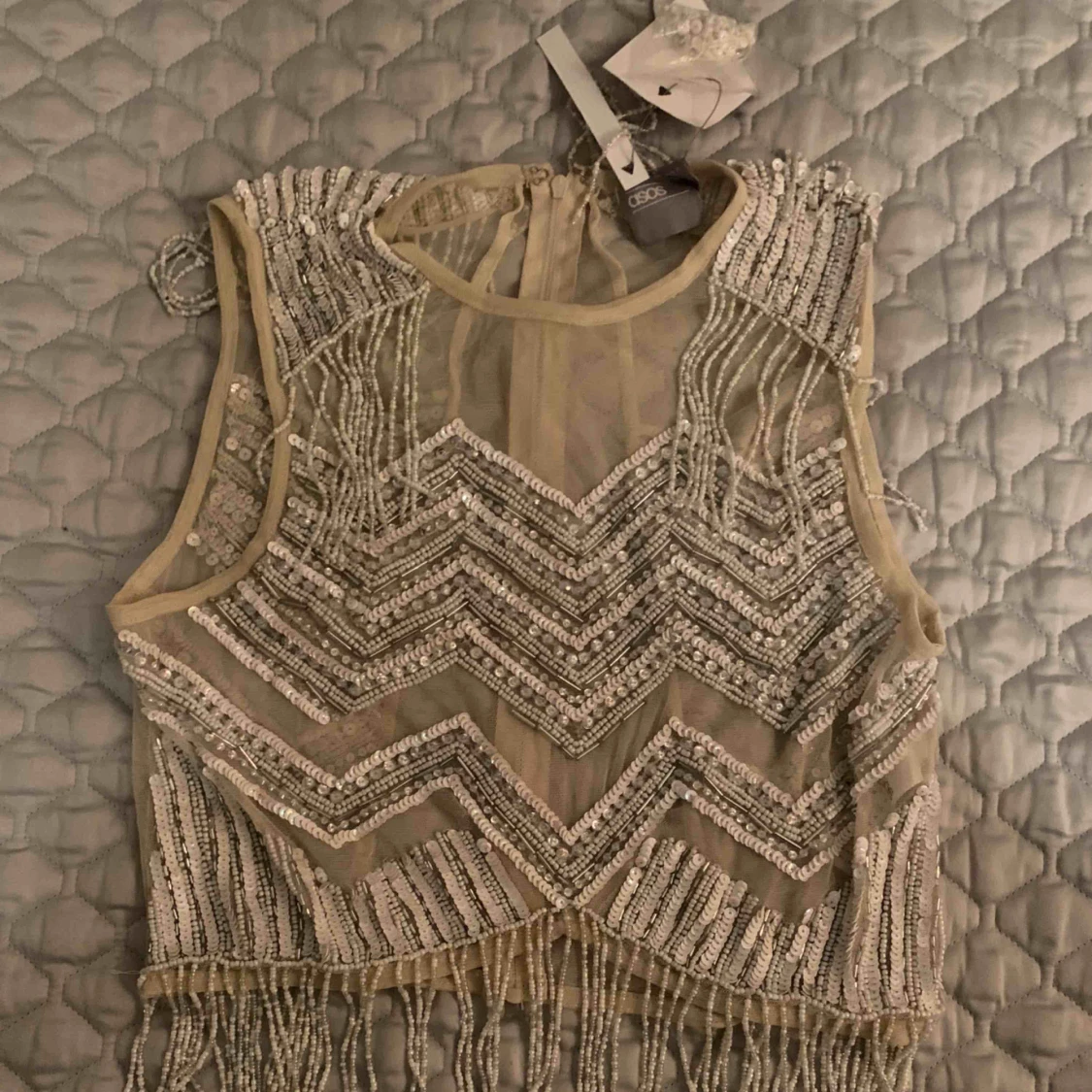 Genomskinlig topp med paljetter och pärlor. Inköpt från Asos. Tröjan är aldrig använd och har prislapp kvar.