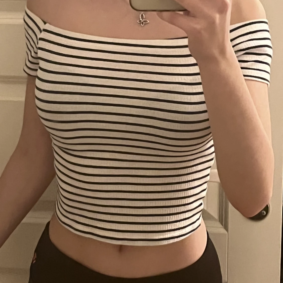 Riiktigt söt randig off-shoulder tröja från H&m!! I nyskick och sitter väldigt fint