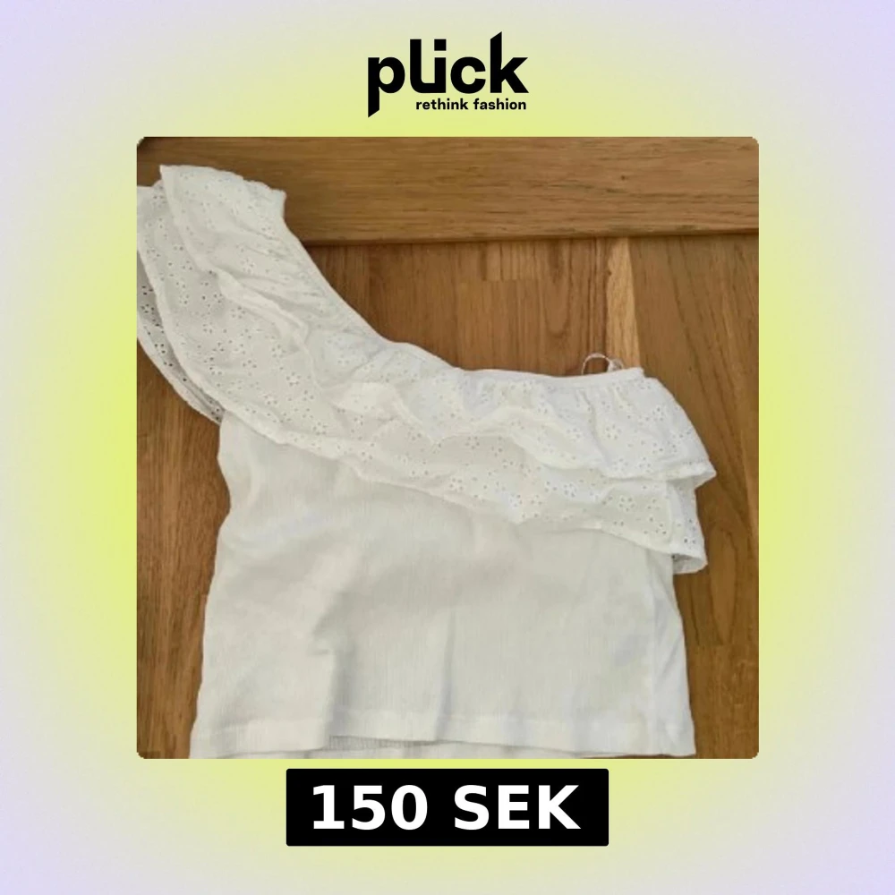 Söt vit offshoulder topp med bred volang och broderade detaljer. Toppen är ärmlös på ena sidan och har en romantisk känsla med sin asymmetriska design. Perfekt för dig som gillar en feminin och trendig stil.