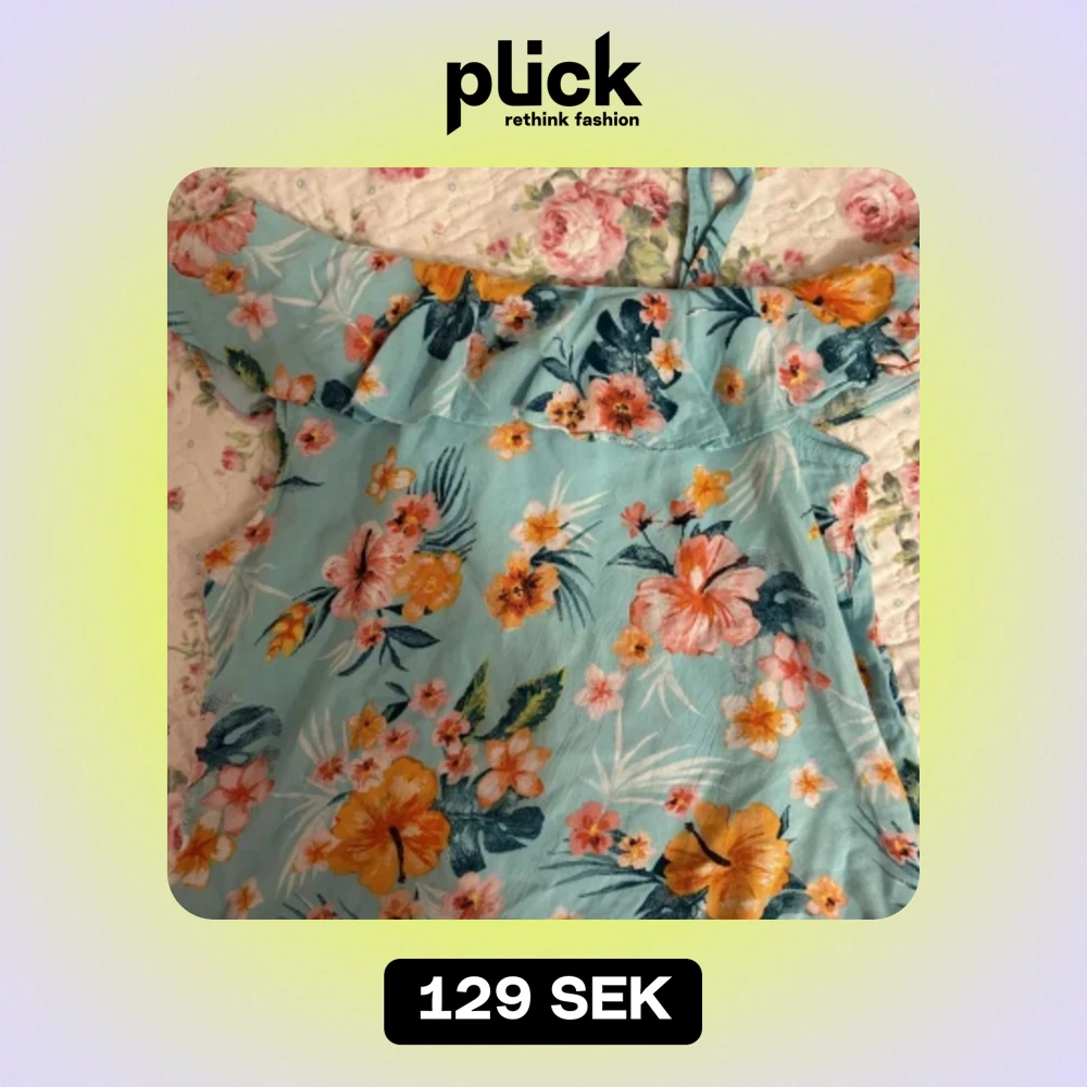 Jättefin top med tropiska blommor i härliga färger, i bra skick.