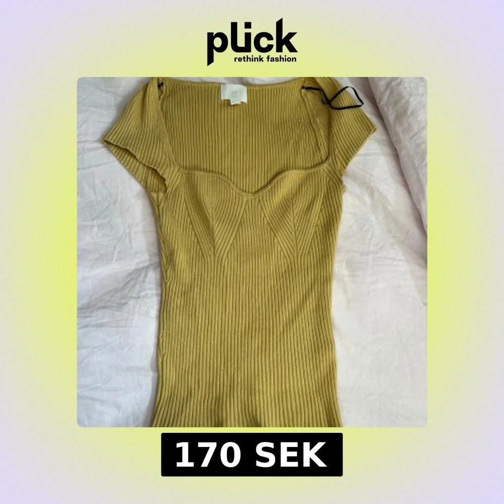 Säljer en snygg gul ribbad topp från H&M med korta ärmar och en smickrande passform. Toppen har en fyrkantig halsringning och är perfekt för både vardag och speciella tillfällen. Passar utmärkt till jeans eller kjol. 🌟