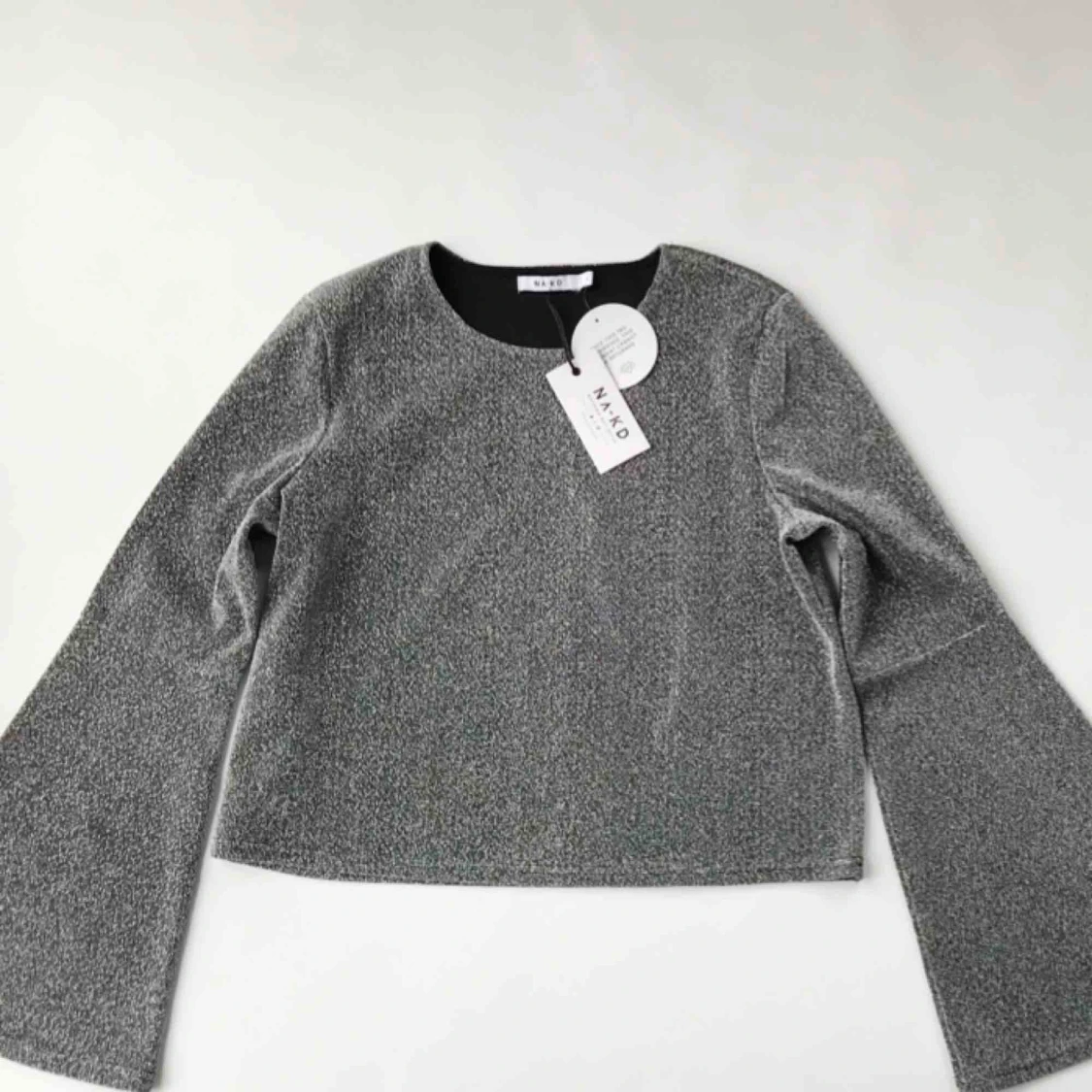 Oanvänd topp från NA-KD. Silvrig/glittrig med trumpetärmar.