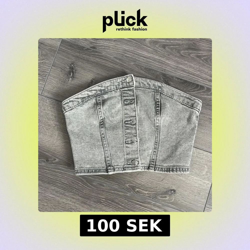 Säljer en snygg grå tubtopp i jeansmaterial från H&M. Toppen har en cool tvättad look, dekorativa sömmar och knappar framtill. Perfekt att styla med höga byxor eller kjol för en trendig vibe. Lappen är kvar då den aldrig är använd!!