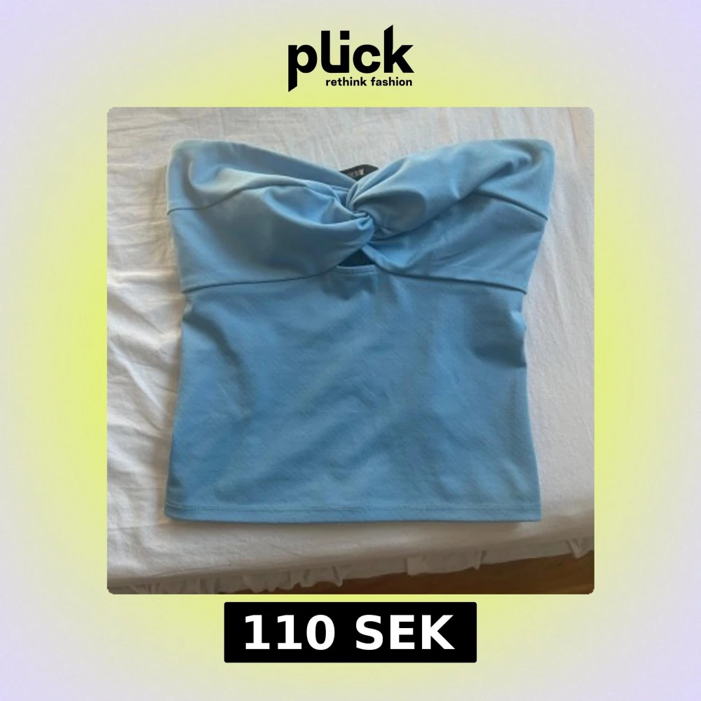 Supersöt ljusblå bandeau tubtopp från Bik Bok med en stor rosett framtill och smockad baksida för extra stretch. Toppen är axelbandslös och har en mjuk, slät yta i bomullsmix. Perfekt för dig som vill ha en chill och trendig look i sommar.