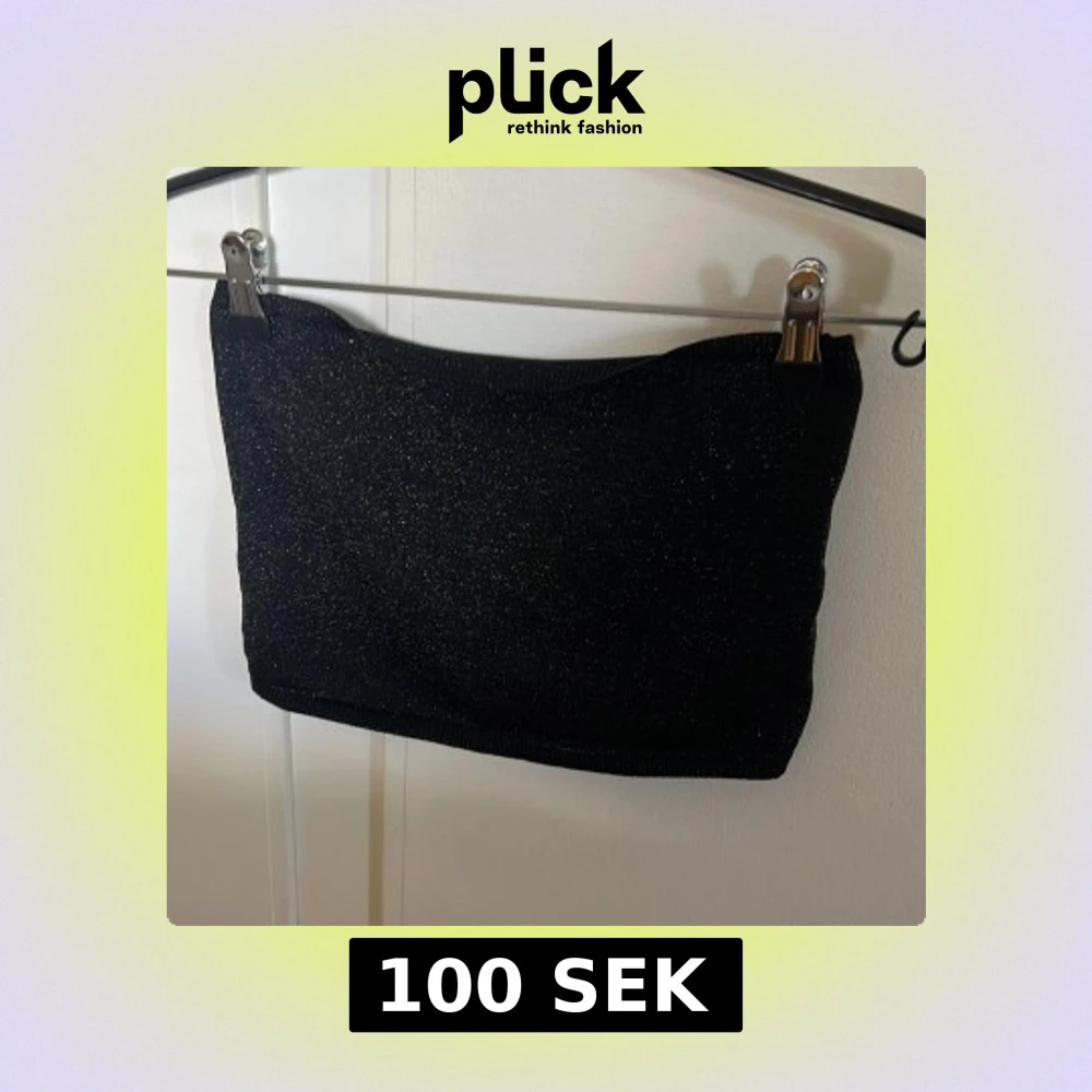Snygg svart tubtopp med glittrande detaljer. Perfekt för en kväll ute eller festliga tillfällen. Enkel och stilren design som passar till många olika outfits.