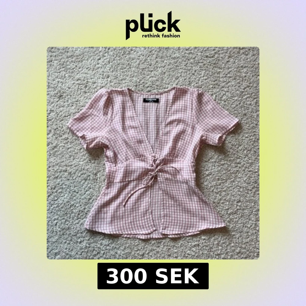 Supersöt rosa och vit rutig blus med v-ringning och knytning i midjan. Kortärmad modell med figurnära passform och lätt utsvängd nederdel. Perfekt för vår och sommar!💖