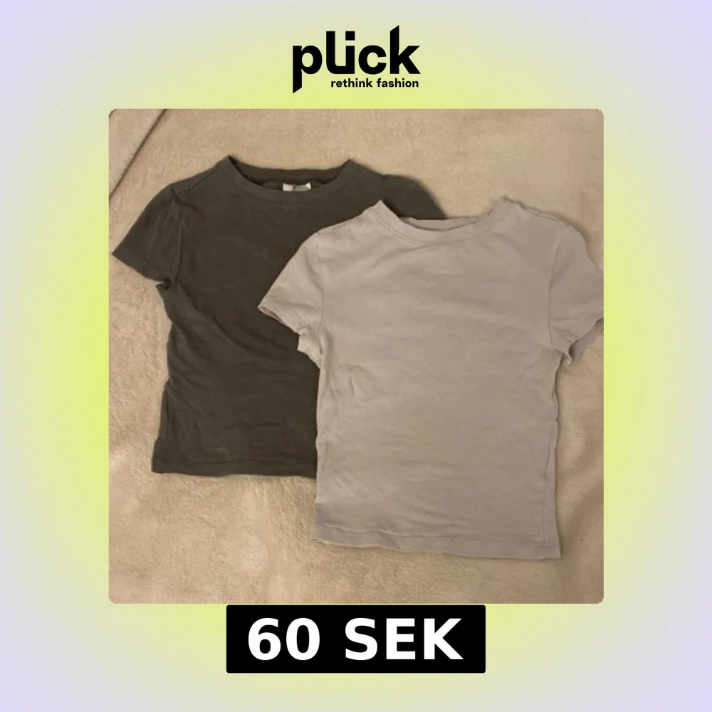 Säljer två enkla t-shirts, en i mörkgrön och en i ljusbeige. Båda har rund halsringning och korta ärmar, perfekta att matcha med jeans eller kjol. Säljer båda för 60kr