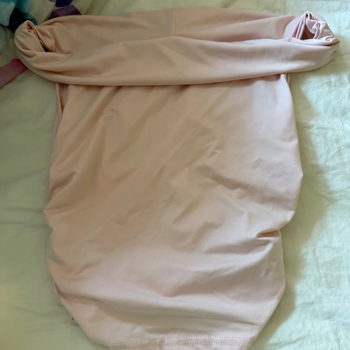 Säljer två stilrena offshoulder klänningar i kort modell, en i vit och en i ljusrosa. Båda är ärmlösa och har en enkel, tight passform med snygg drapering upptill. Perfekta för dig som gillar minimalistisk och trendig stil.
