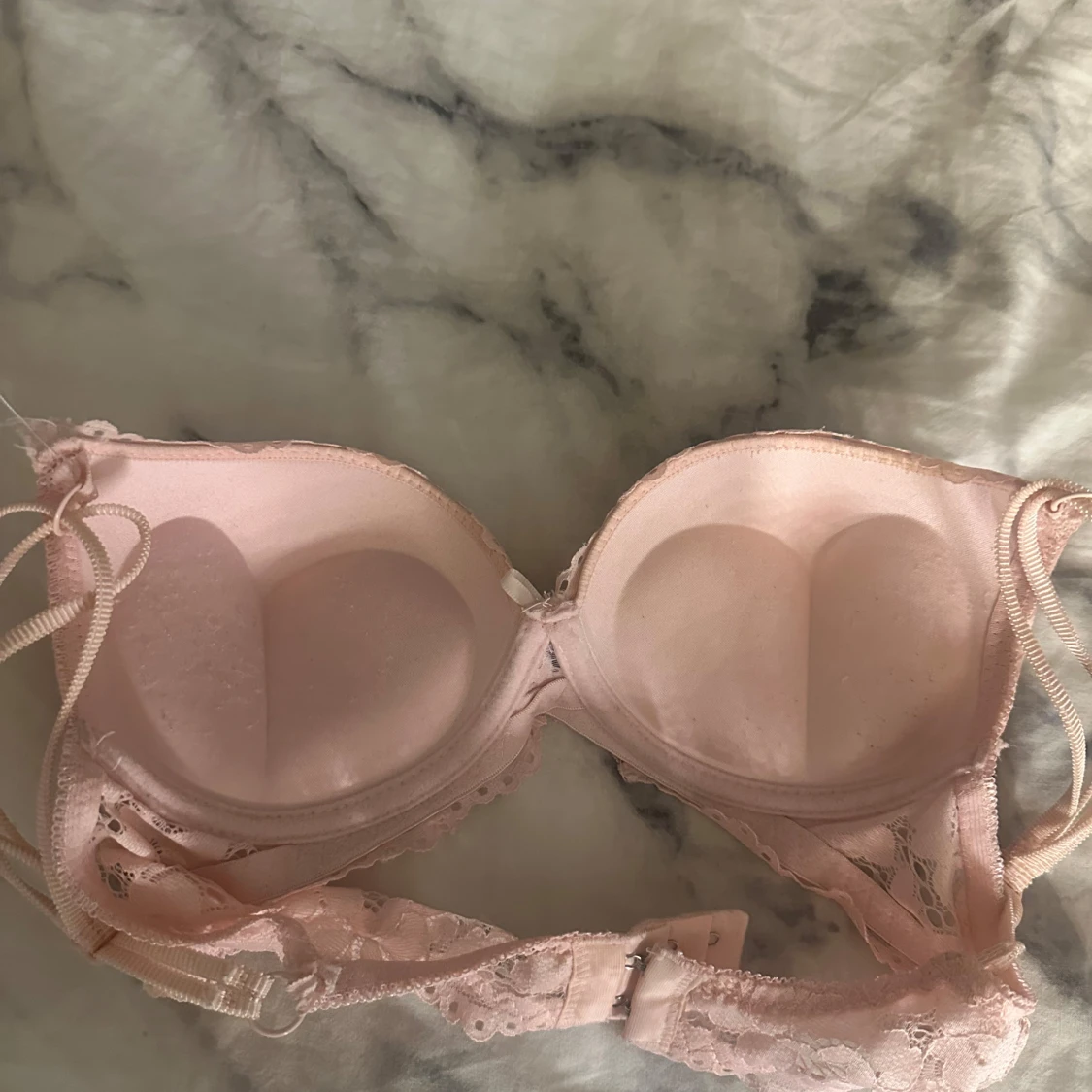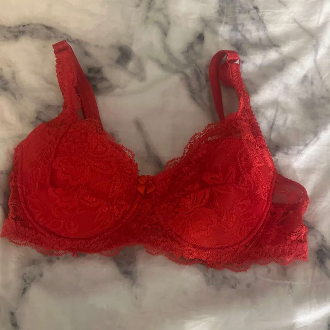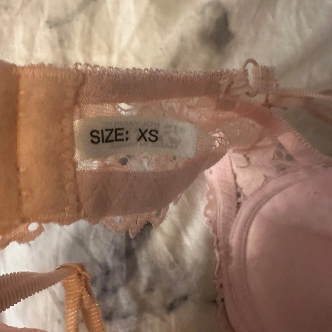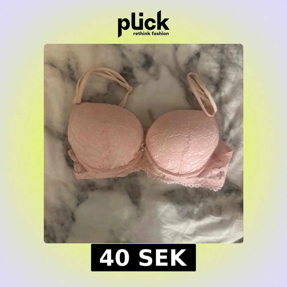 Säljer två snygga bh-ar i storlek XS. En är ljusrosa med blommig spets, vadderade kupor och justerbara axelband. Den andra är röd med blommig spets, rosett framtill och justerbara axelband. Båda har fina spetsdetaljer och ger en feminin look.