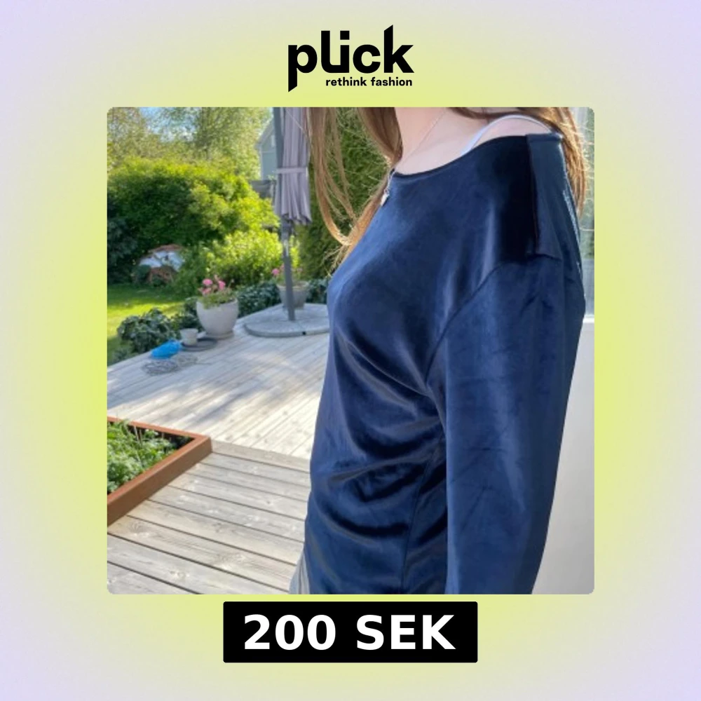 Cool mörkblå tröja i ett sammetsliknande material. Glansigt och stretchigt tyg. Köpt secondhand i somras men har aldrig kommit till användning. Storlek M men bra passform på mig som är XS/S!