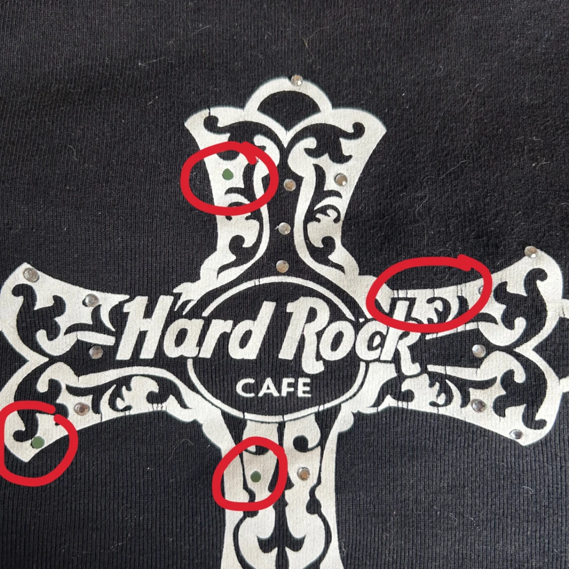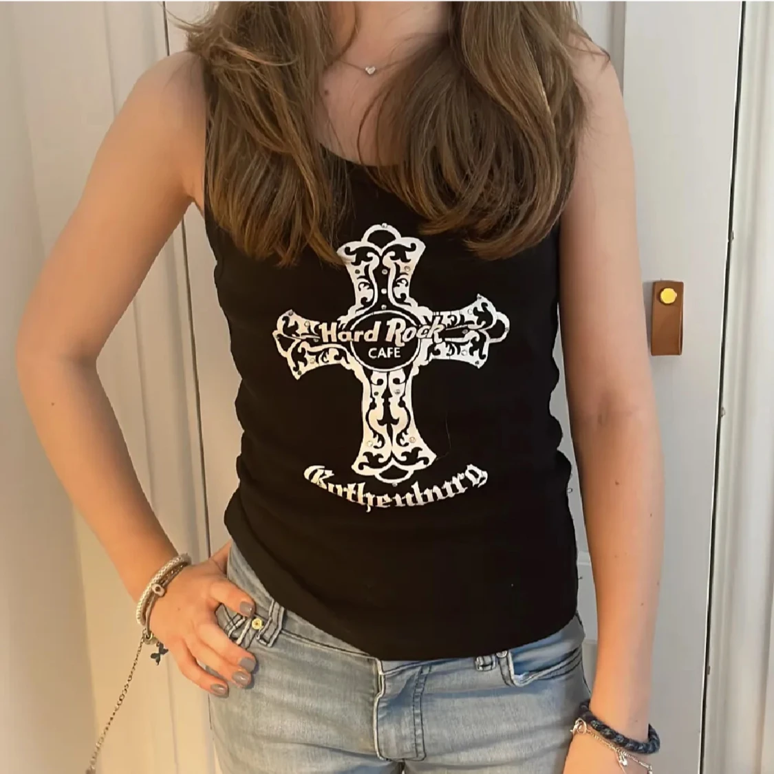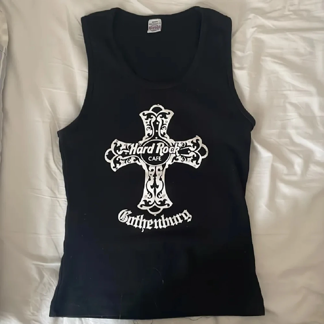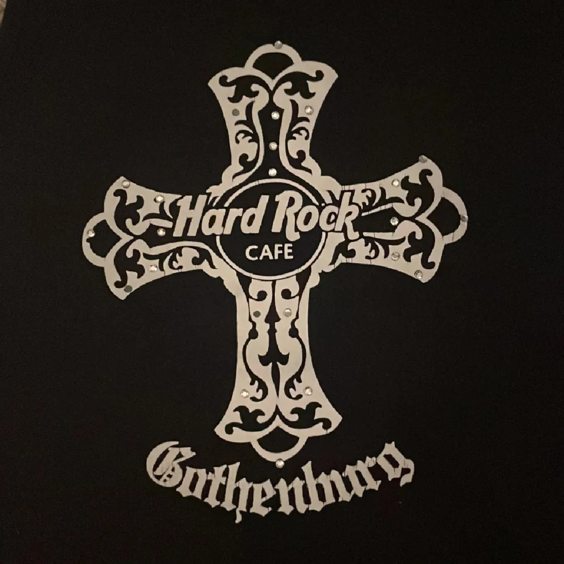 Jättecoolt linne från hard rock café i storlek M men passar också S😋👍😜fråga om flera bilder om du vill. Jätte bra skick förutom sprickor i trycket och några diamanter som saknas (se sista bilden)
