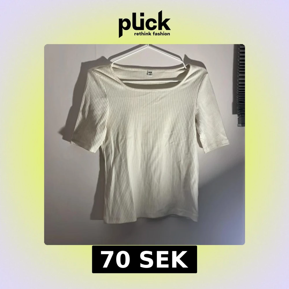 Säljer en stilren vit ribbad topp från Uniqlo. Toppen har en klassisk design med korta ärmar och rund halsringning. Perfekt för en minimalistisk look.