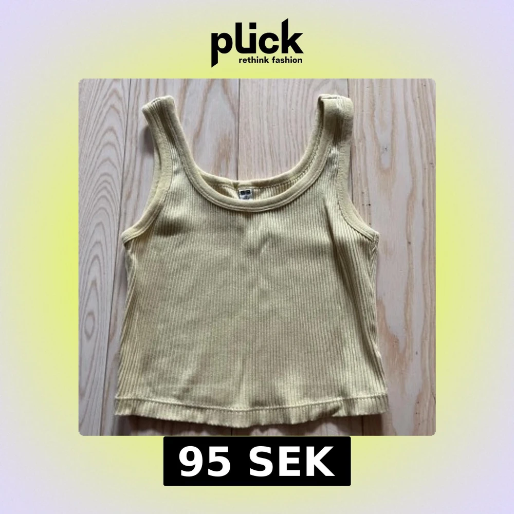 Gul linnetopp från Uniqlo i storlek XS, kort om magen. Toppen är i mycket bra skick och är bara använd en eller två gånger.