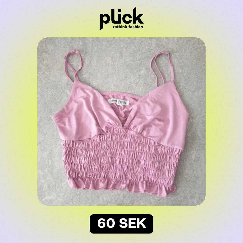 Jätte fin smockad topp från Urban Outfitters Storlek L, stretchig. Väldigt bra skick. Sitter jättefint på men tyvärr för liten för mig. Smockad crop top med plunge neckline