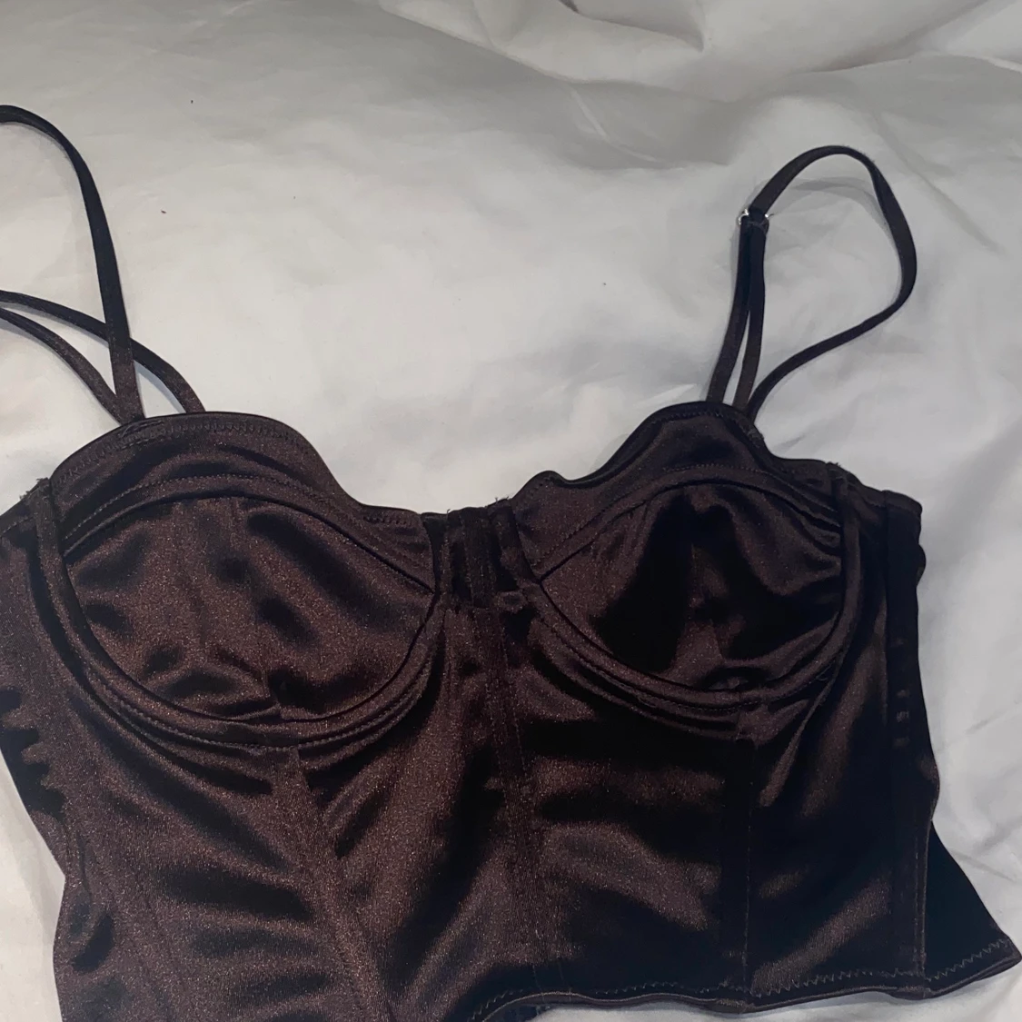 En jättefin korsett som tyvärr blivit för liten nu. Det finns dragkedja på baksidan och du kan välja att ha med eller utan band