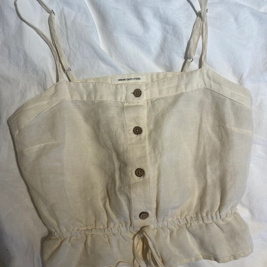 Jättegullig beige linne topp med knappar och knytning i midjan. Köparen står för frakten på 24kr.