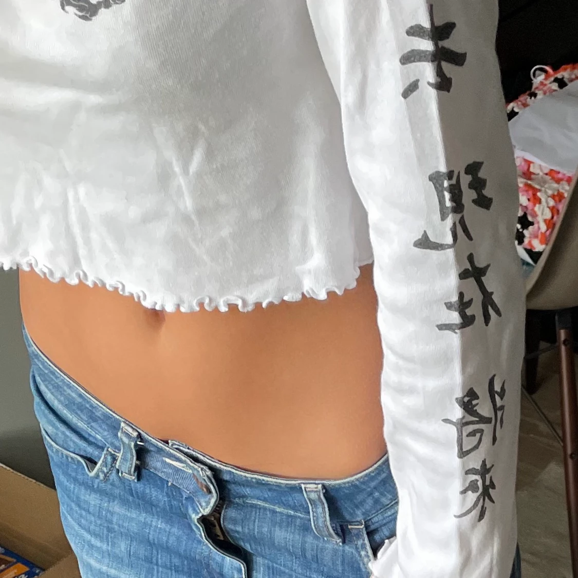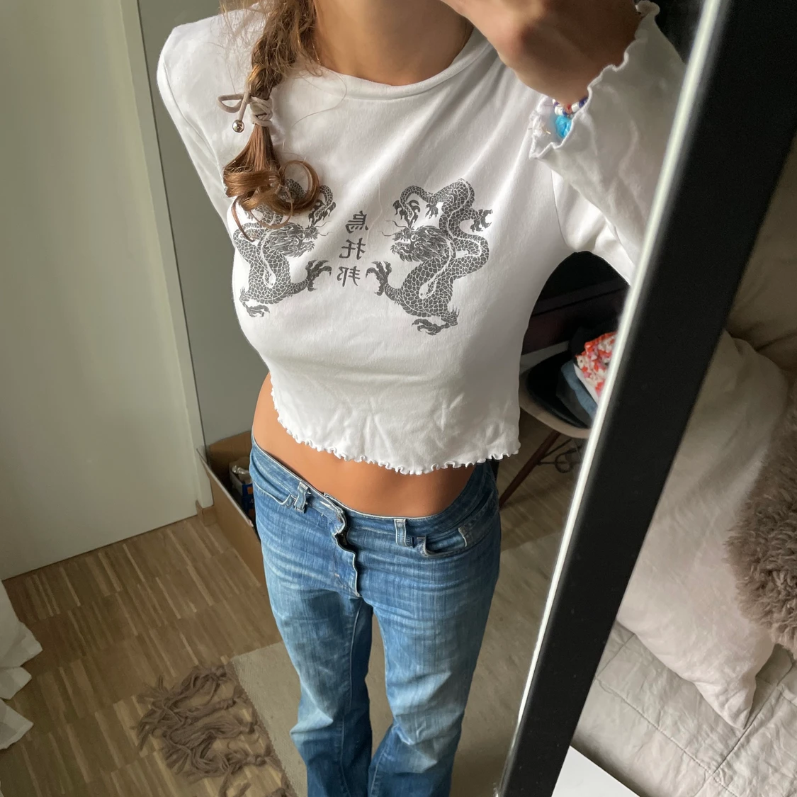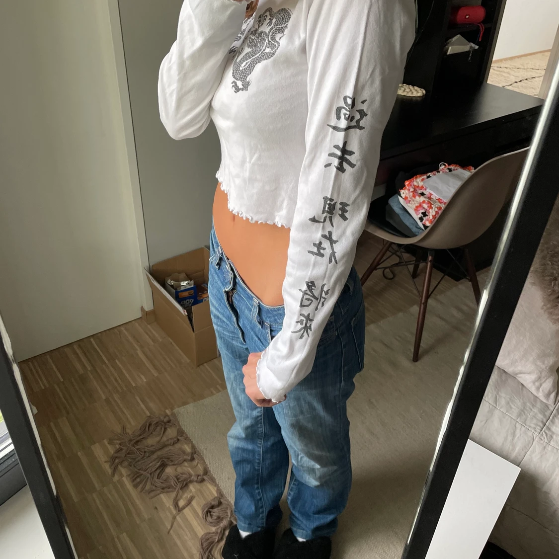 Så härlig vit långärmad tröja, lagom stretchig och super skön! Från Urban outfitters, använd en gång❤️❤️😍🙏🏻
