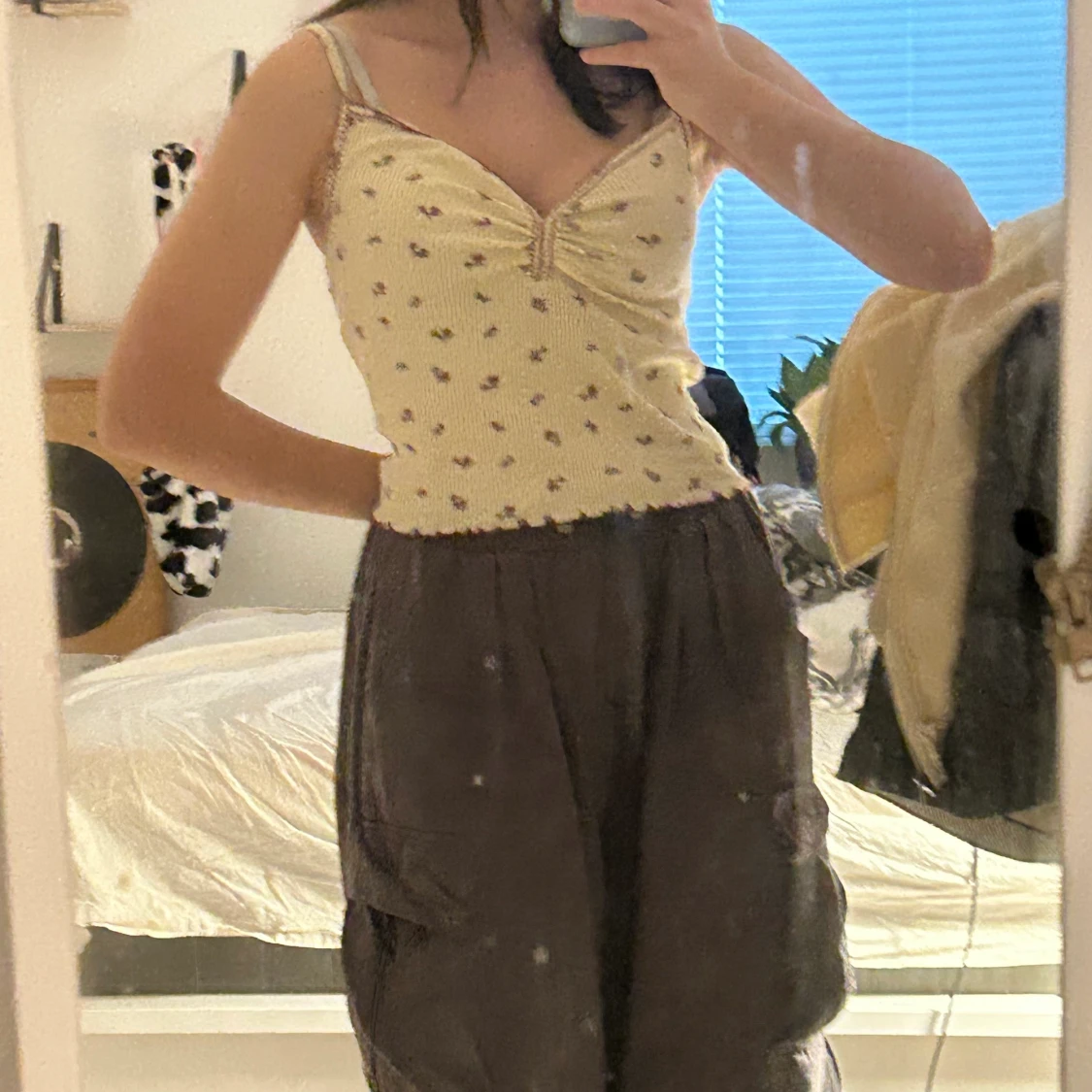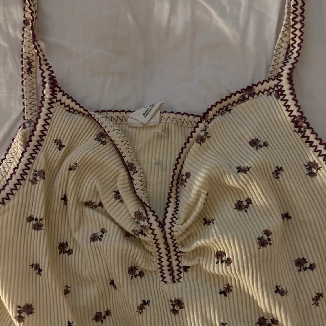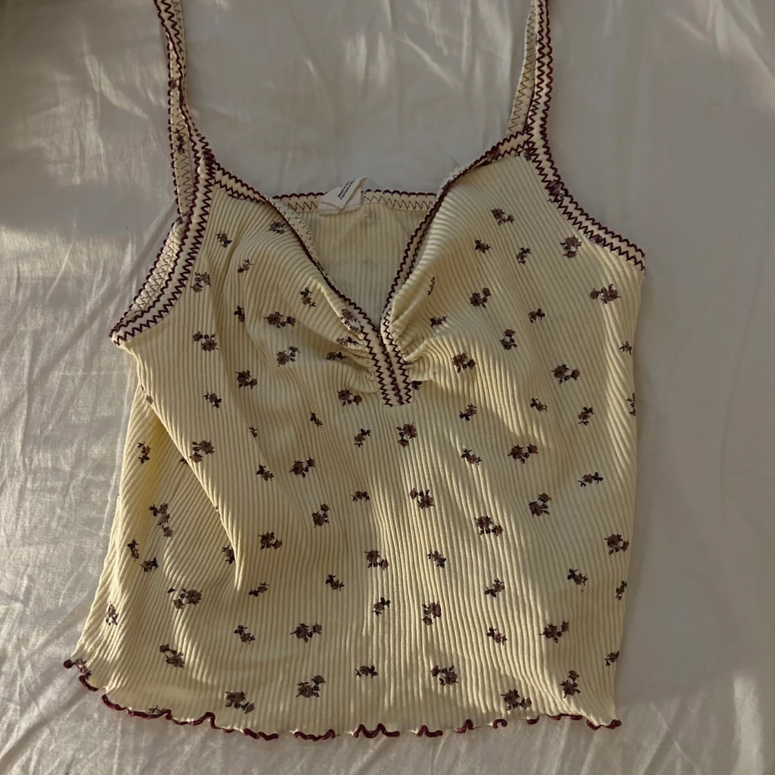ljusgult linne med blommor och lila detaljer från urban outfitters! säljer pga för stor. kan mötas upp i stockholm ((: