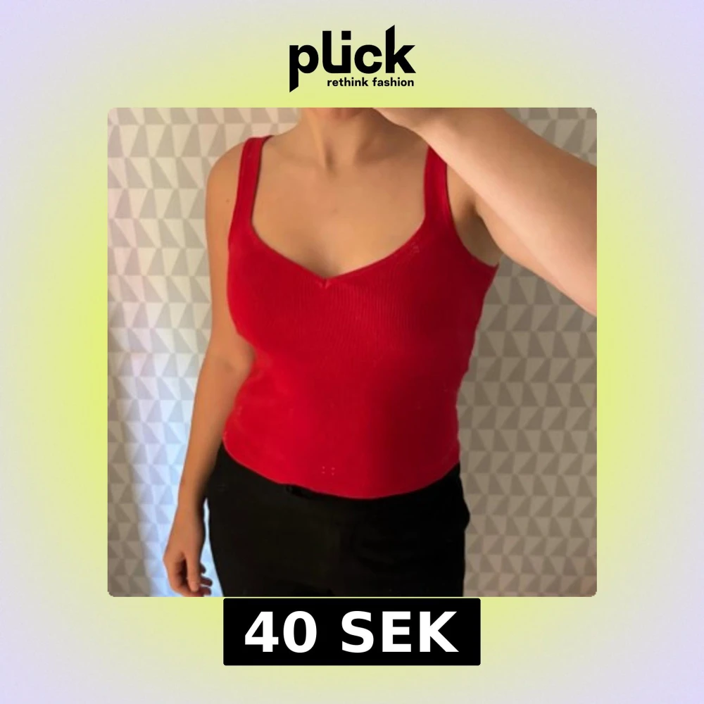 Säljer en röd ribbad linnetopp med v-ringning och breda axelband. Märket är Piazza Italia, storlek M och fint skick!🤗