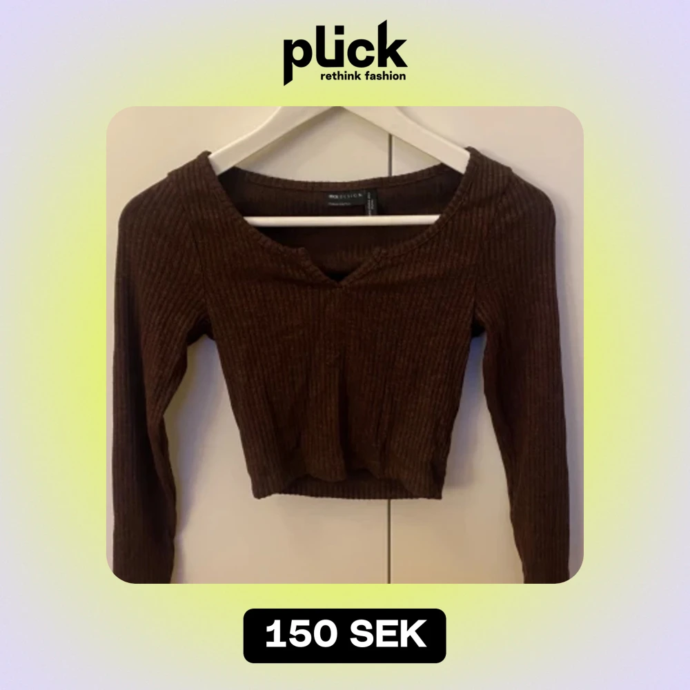 En jättegullig kort topp i brun färg som är ribbad, den är i stolek 34(petite) och är rätt liten i storleken. Säljer den då den inte kommit till användning någon gång.