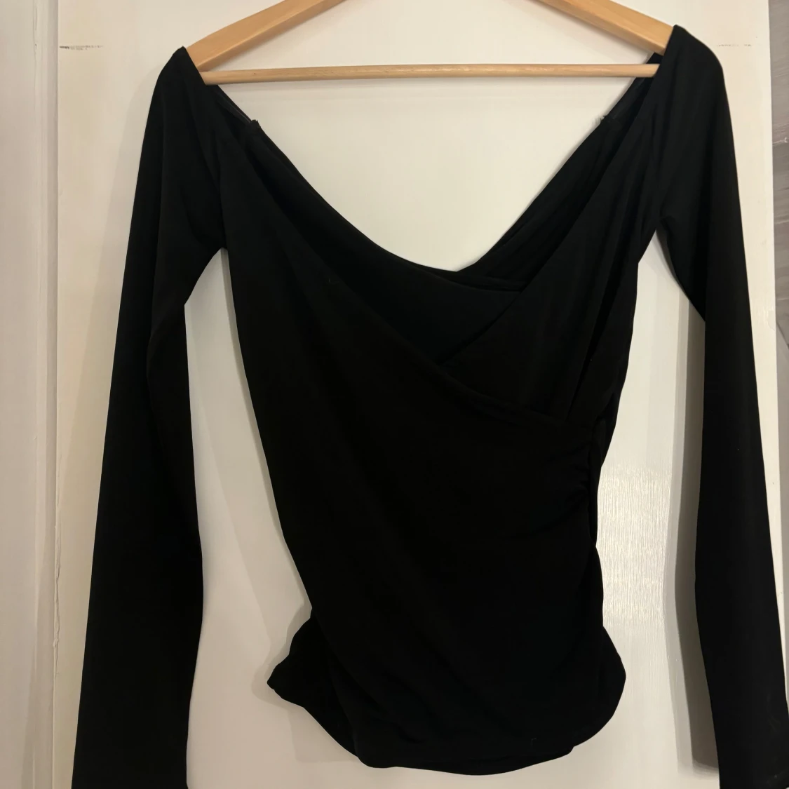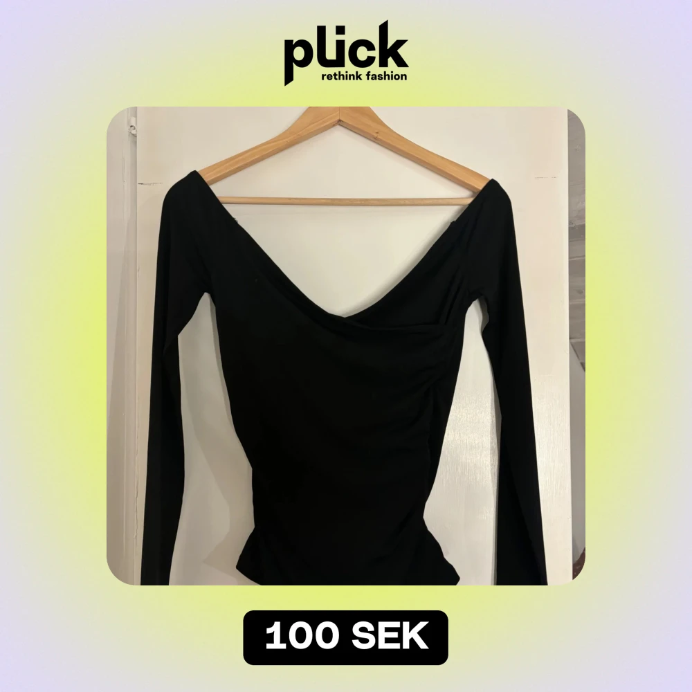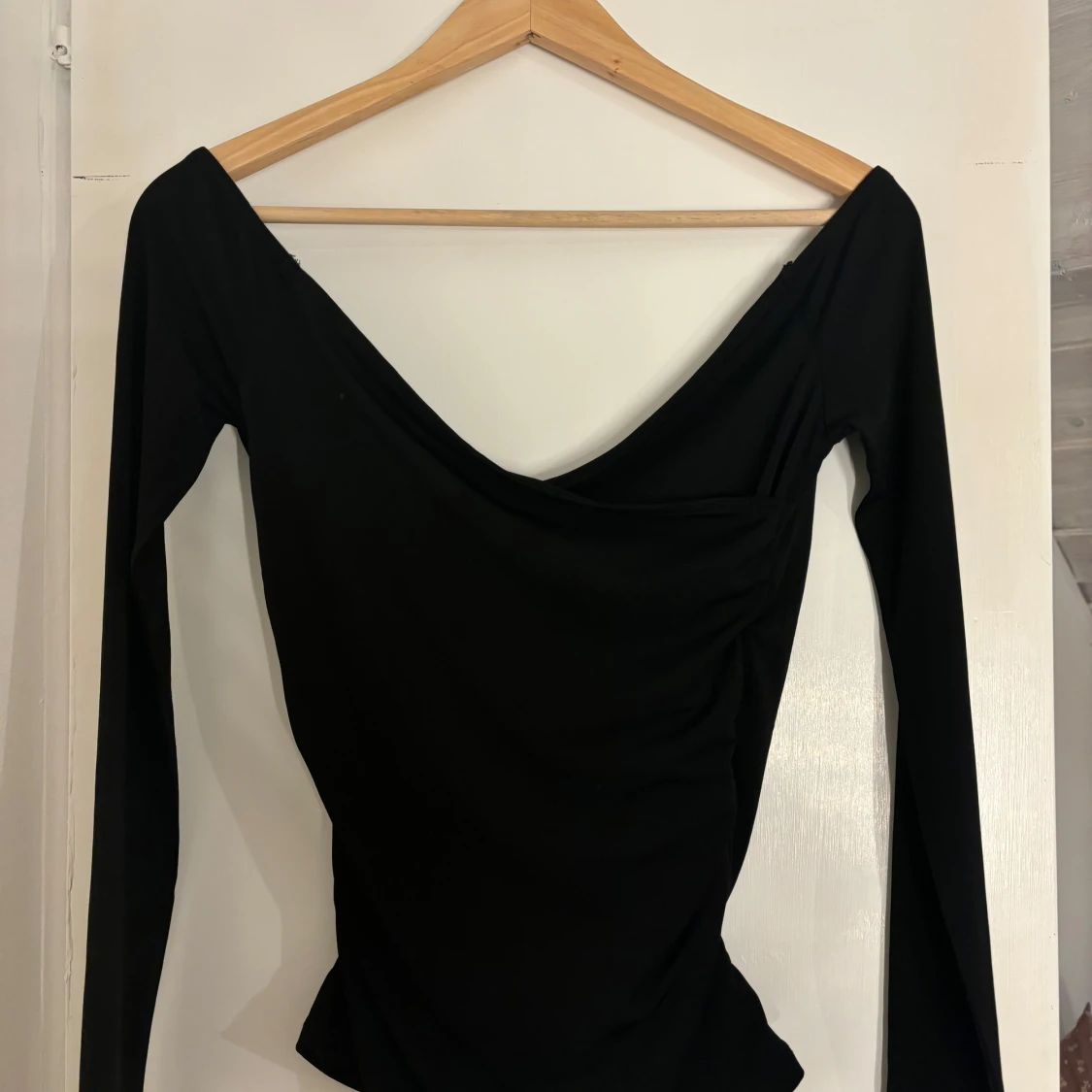Jättefin svart långärmad topp med urringning. Den är från bikbok och i storlek xs men funkar även på s. Inga skador eller liknande och endast använd 1 gång☺️
