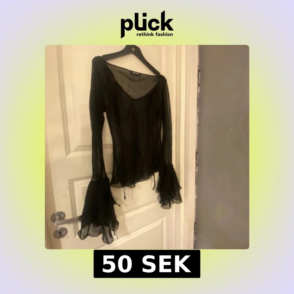 Snygg svart transparent blus från ONLY med långa ärmar och volangdetaljer vid ärmslut och nederkant. Perfekt för en stilfull look.
