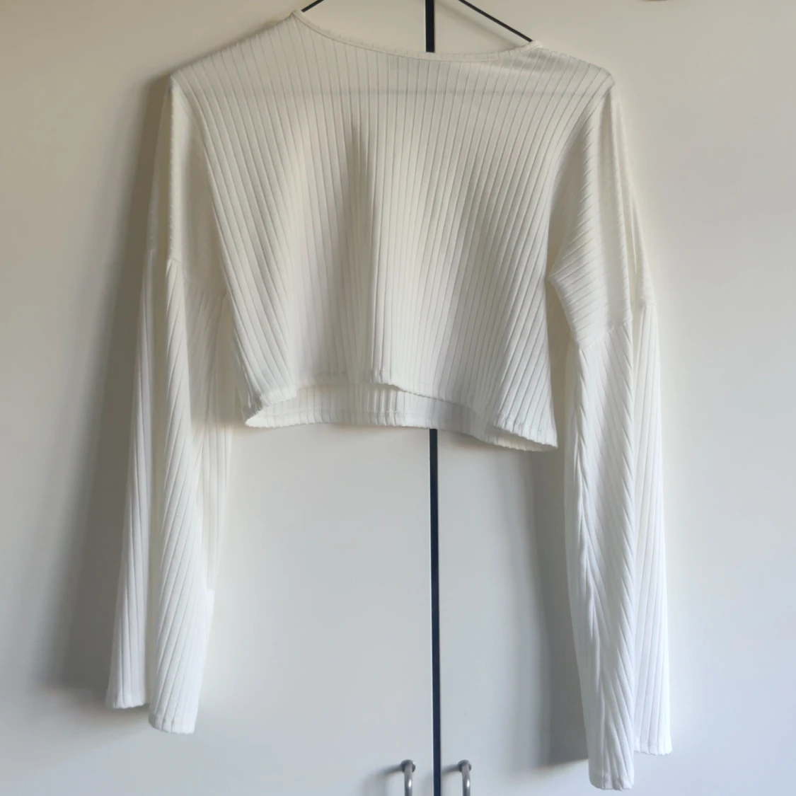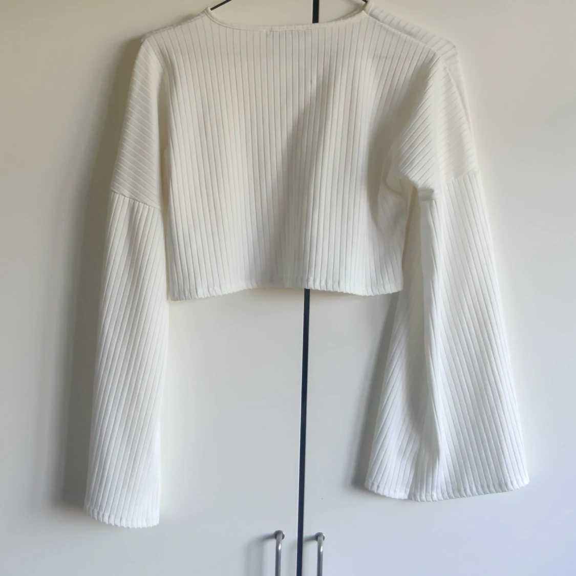 Croppad tröja med utsvängda ärmar. Ribbat material. Storlek S, bra skick