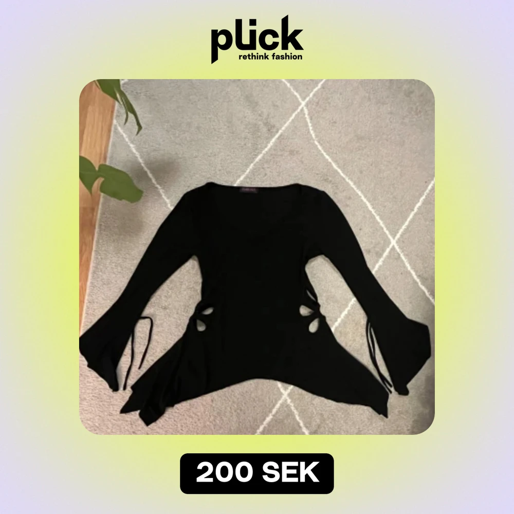 Trekvartslånga, utsvängda ärmar med utskurna blommor vid midjan! Superfina detaljer och elastiskt, mjukt tyg. Snören vid ärmarna:) Toppen är vringad, svårt att se på bild. Passar S-M