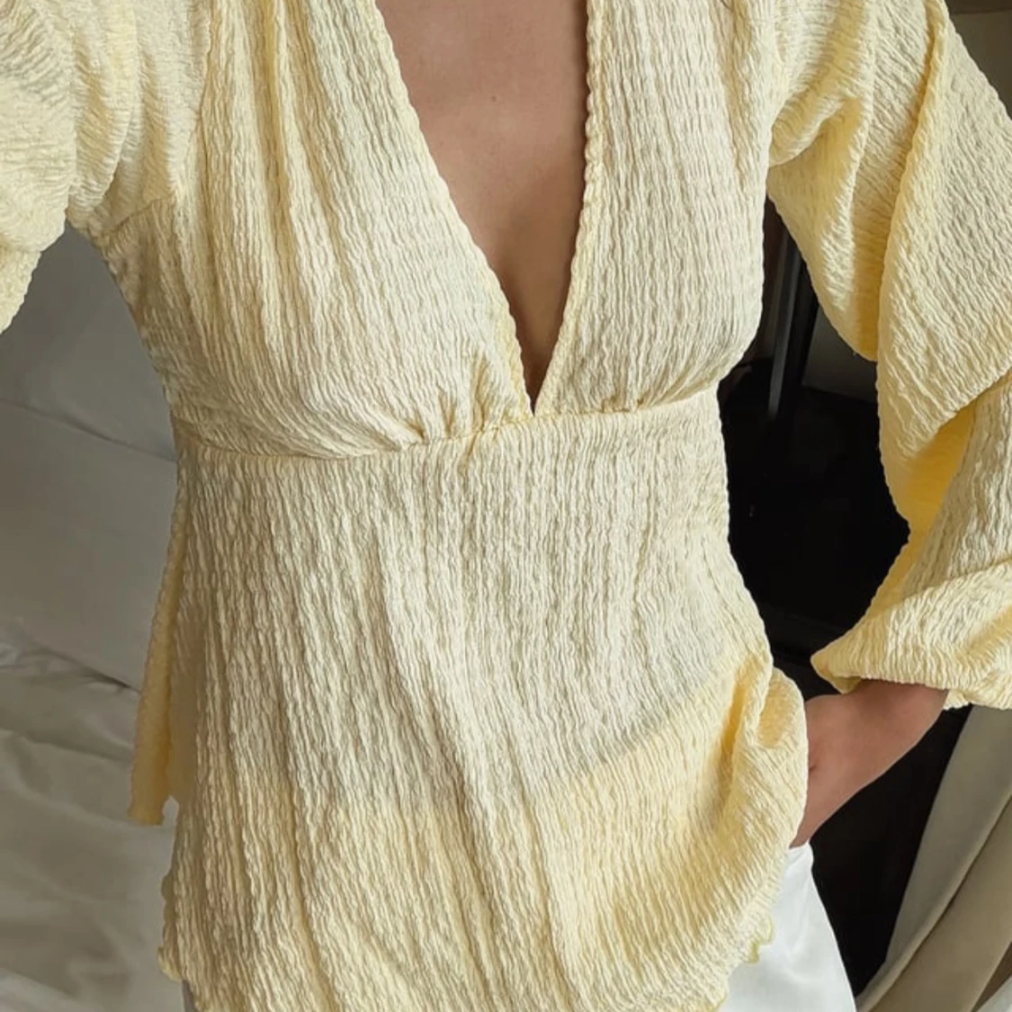 Ljusgul blus med v-ringning