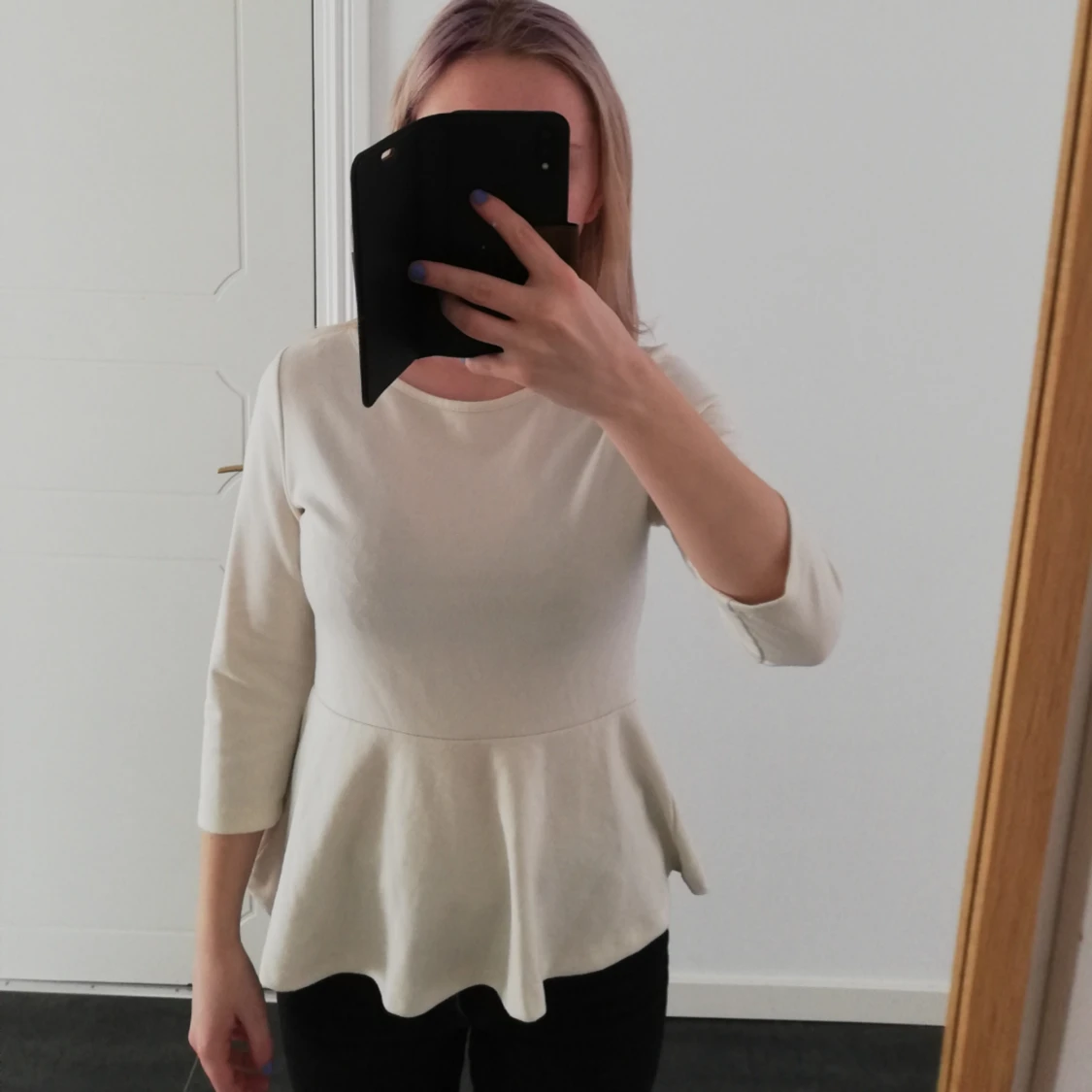 Krämvit t op med trekvartsärm, utsvängd nertill och dragkedja bak. Från Vila i storlek M men passar även en S. Använd men i relativt gott skick. Köparen står för frakten 🌷💮