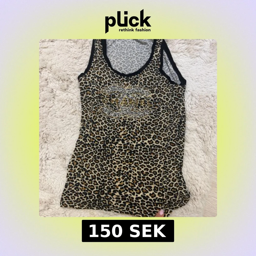 Snygg leopardmönstrad linnetopp med glittrande strassdetaljer framtill. Köpt utomlands i en vintage butik