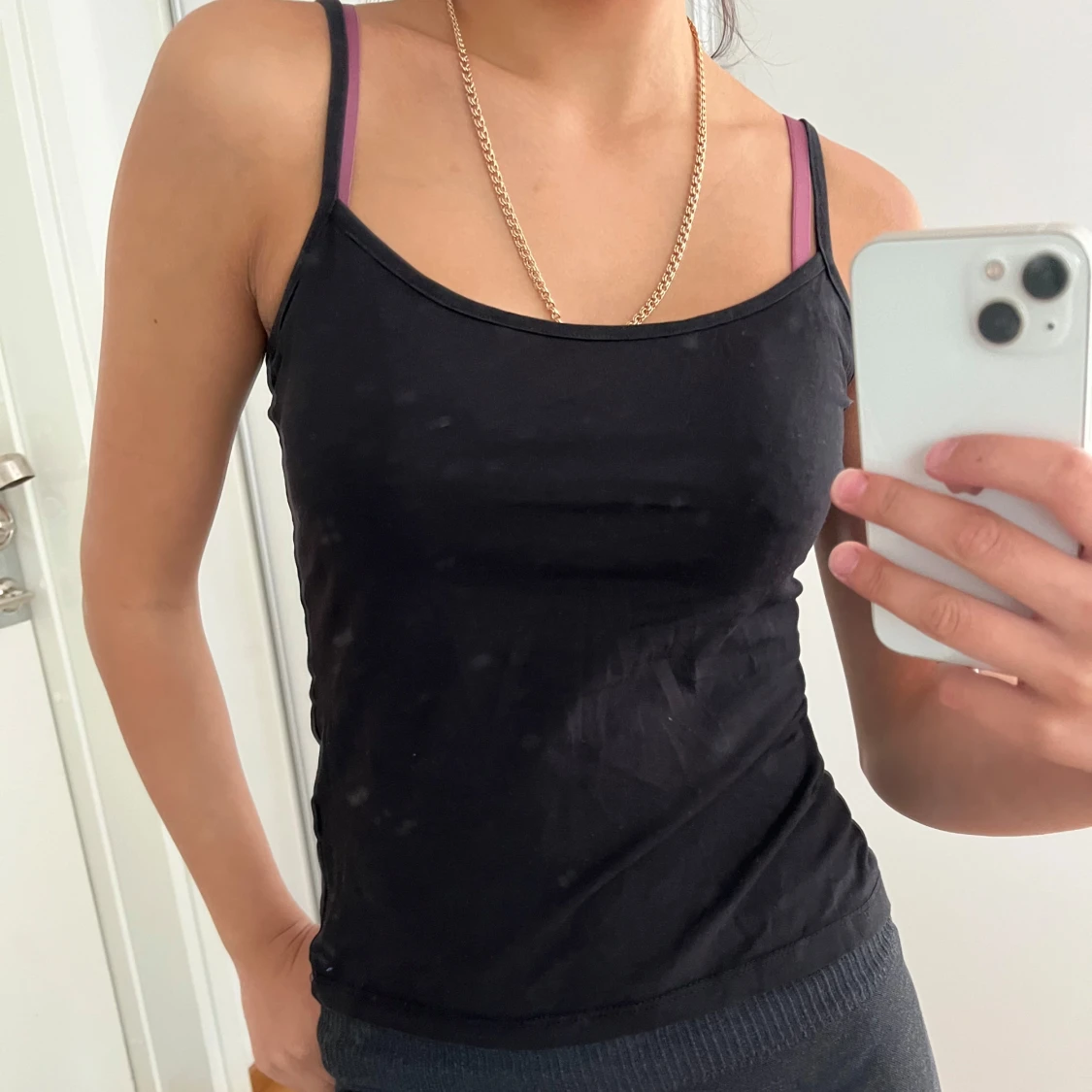 Enkel svart linnetopp med smala axelband. Toppen är figurnära och passar perfekt till jeans, kjol eller layering. Mjuk och skön känsla, perfekt för varma dagar eller som lager under en skjorta.