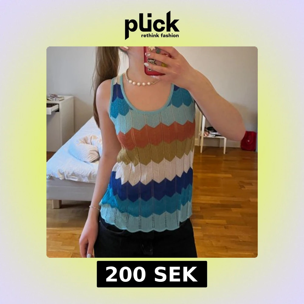 Supercool topp som påminner om missoni i mönstret, glittrig i tyget. Köpt på en strandbutik i Spanien för 50€. One of a kind verkligen🙏🏻. Står storlek M/L på lappen men jag bär vanligtvis S och den sitter perfekt på mig.