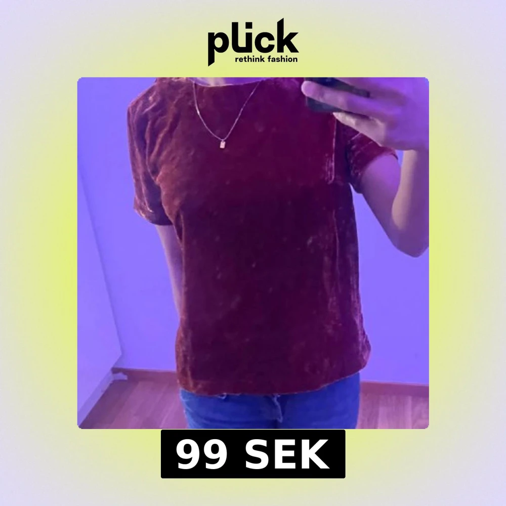 Säljer en snygg röd sammetstopp med korta ärmar. Toppen har en mjuk och lyxig känsla, perfekt för att piffa upp din outfit. Passar bra till både jeans och kjol.