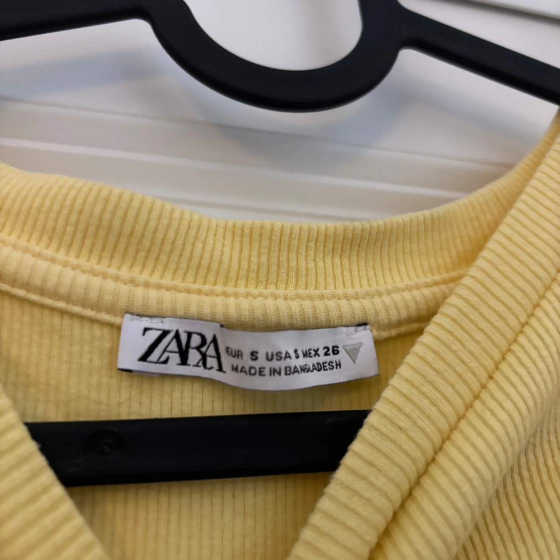 Säljer en söt gul ribbad topp från Zara med volangdetaljer på ärmarna. Toppen har en rund halsringning och korta ärmar. Perfekt för en solig dag!