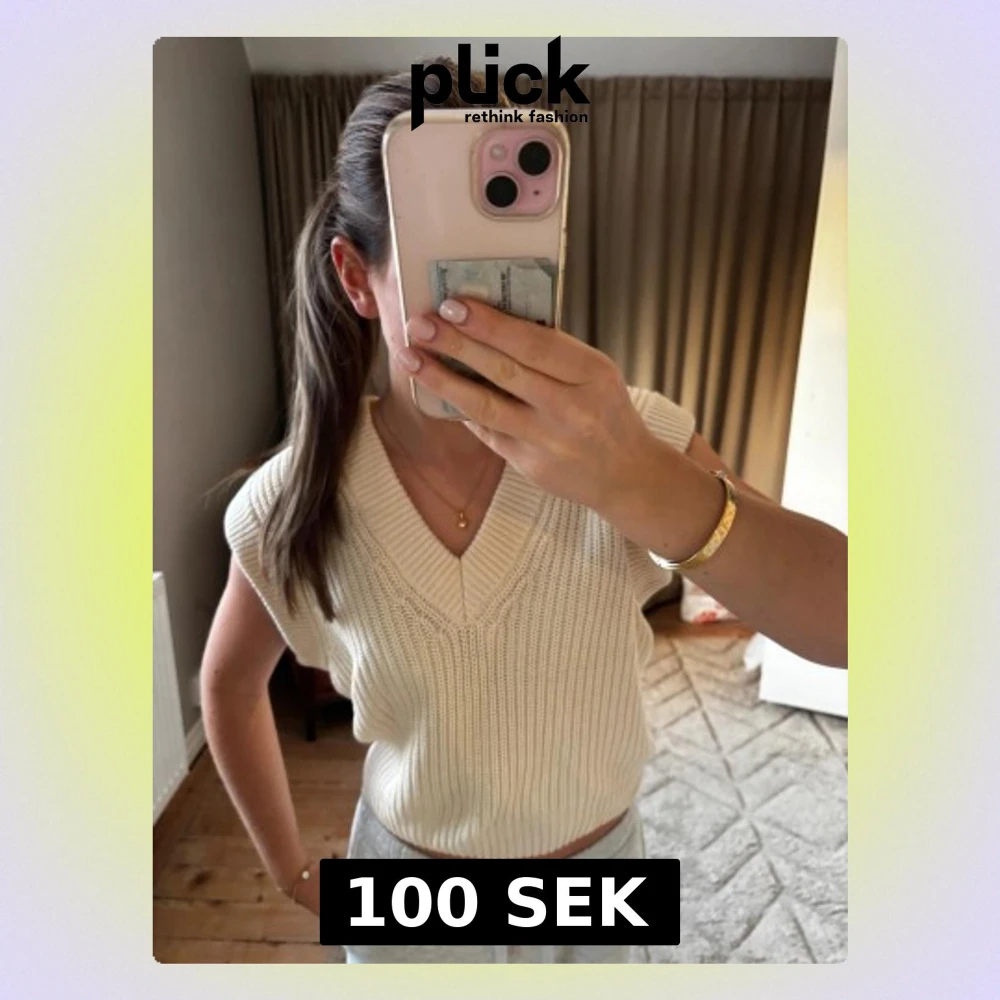 Säljer en krämvit stickad topp med v-ringning och bred ribbad kant. Modellen är croppad och kan bäras både med axlarna uppe eller offshoulder. Materialet är mjukt och stickat, perfekt för dig som gillar en chill och trendig look.