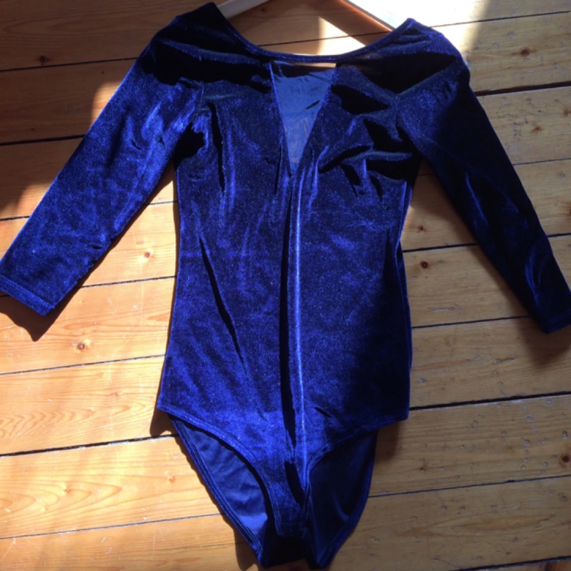 Djupblå velour-body storlek S. Använd endast en gång pga. storlek. Djup i ryggen. Finns i Malmö/Lund. Kan skickas om så önskas - köpare står då för frakt.