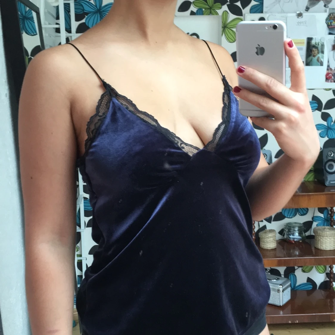 Marinblått velvetlinne från ZARA. Smala axelband med spetsdetaljer över bröstet. Kan mötas upp i Göteborg annars står köparen för frakten. 😋