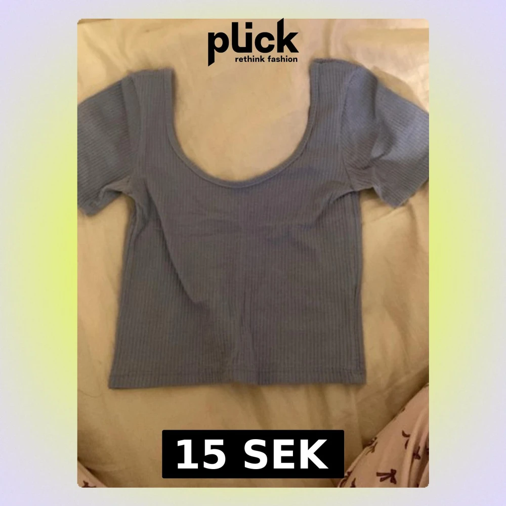 Säljer en ljusblå croppad topp med ribbad struktur och djup rundad halsringning. Toppen har korta ärmar och är tillverkad i ett mjukt och stretchigt material som sitter snyggt på kroppen. Perfekt att matcha med jeans eller kjol. Okänt märke men tror den är från VeroModa och storlek xs/s