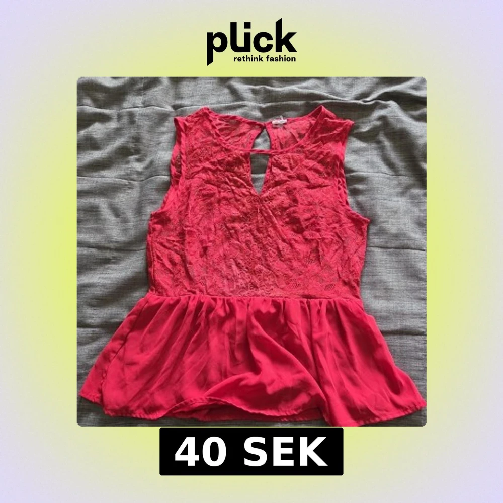 Säljer en röd ärmlös blus från Vero Moda med spets upptill och volang nertill. Blusen har v-ringning och en liten öppning i ryggen. Mer åt det vinröda hållet. Köpt begagnad men aldrig använd av mig.