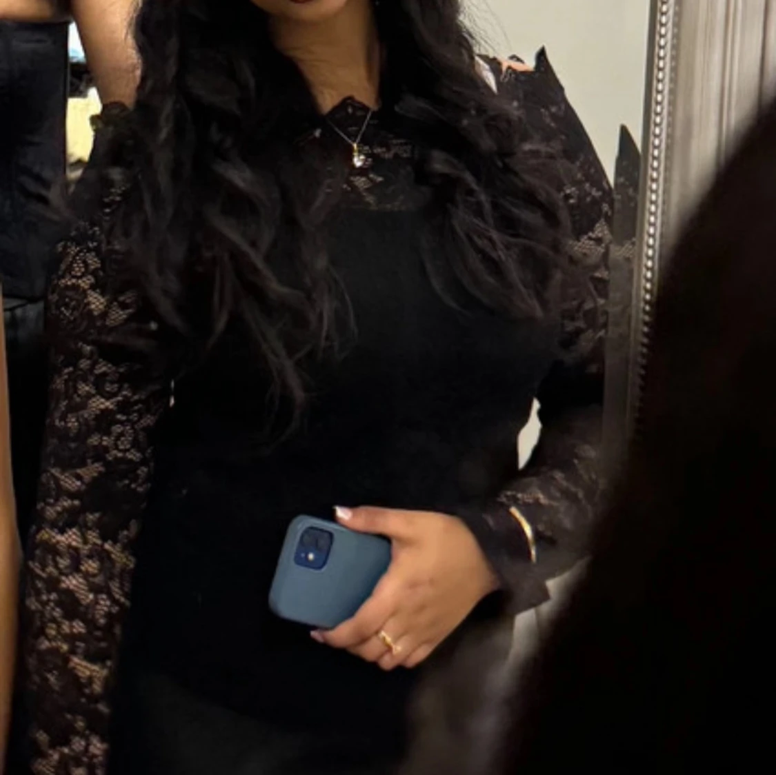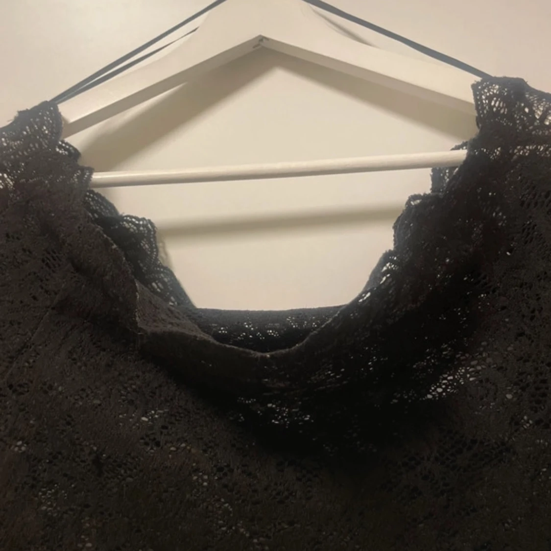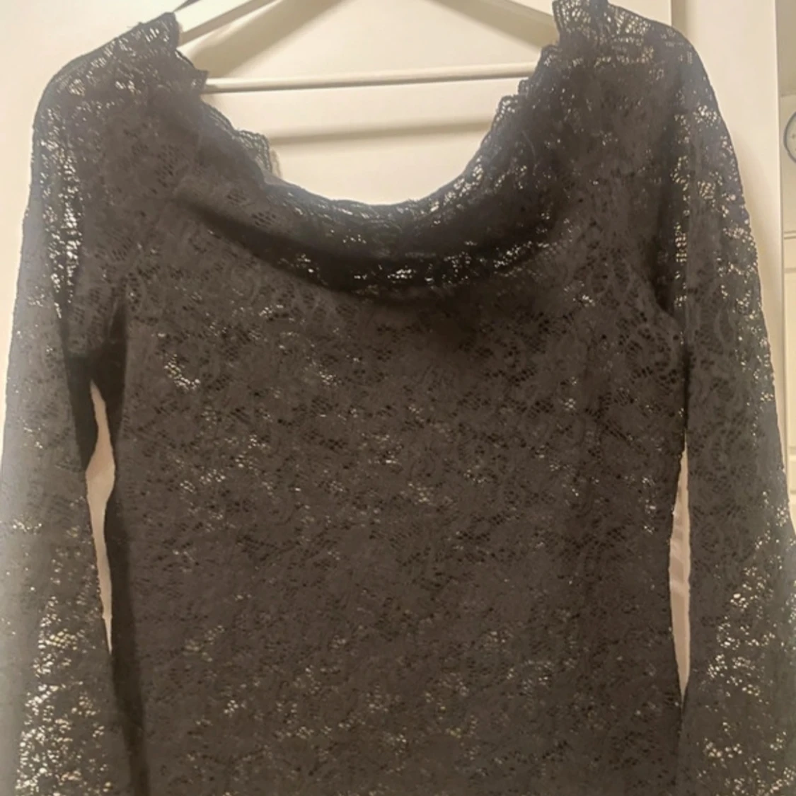 Supersnygg svart spets topp från Vero Moda med långärmade transparenta ärmar och hög krage. Den har figurnära passform och vackra spetsdetaljer över hela plagget. Perfekt för dig som vill sticka ut med en elegant och trendig look. (Pris kan diskuteras)