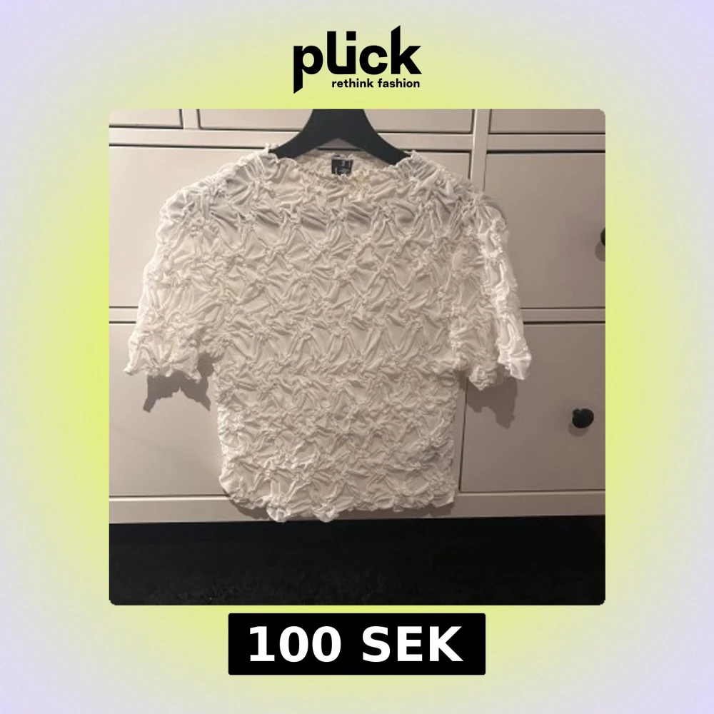 Säljer en vit blus från Vero Moda med ett unikt texturerat mönster. Blusen har korta ärmar och en lös passform, perfekt för en stilren look. Tillverkad i ett lätt och luftigt material. Använd fåtal gånger, i storlek 36/S