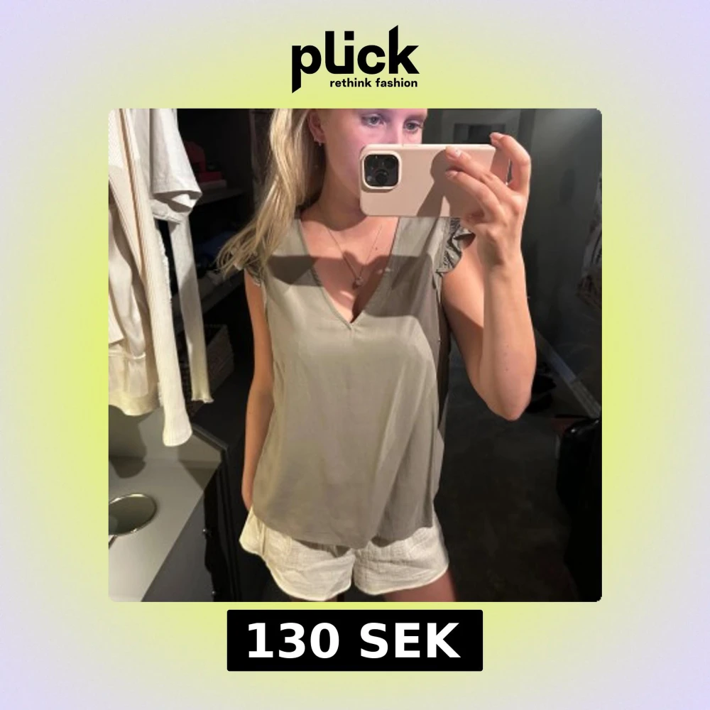 Supersöt beige blus från Vero Moda med v-ringning och volangdetaljer på ärmarna. Använd endast en gång💗