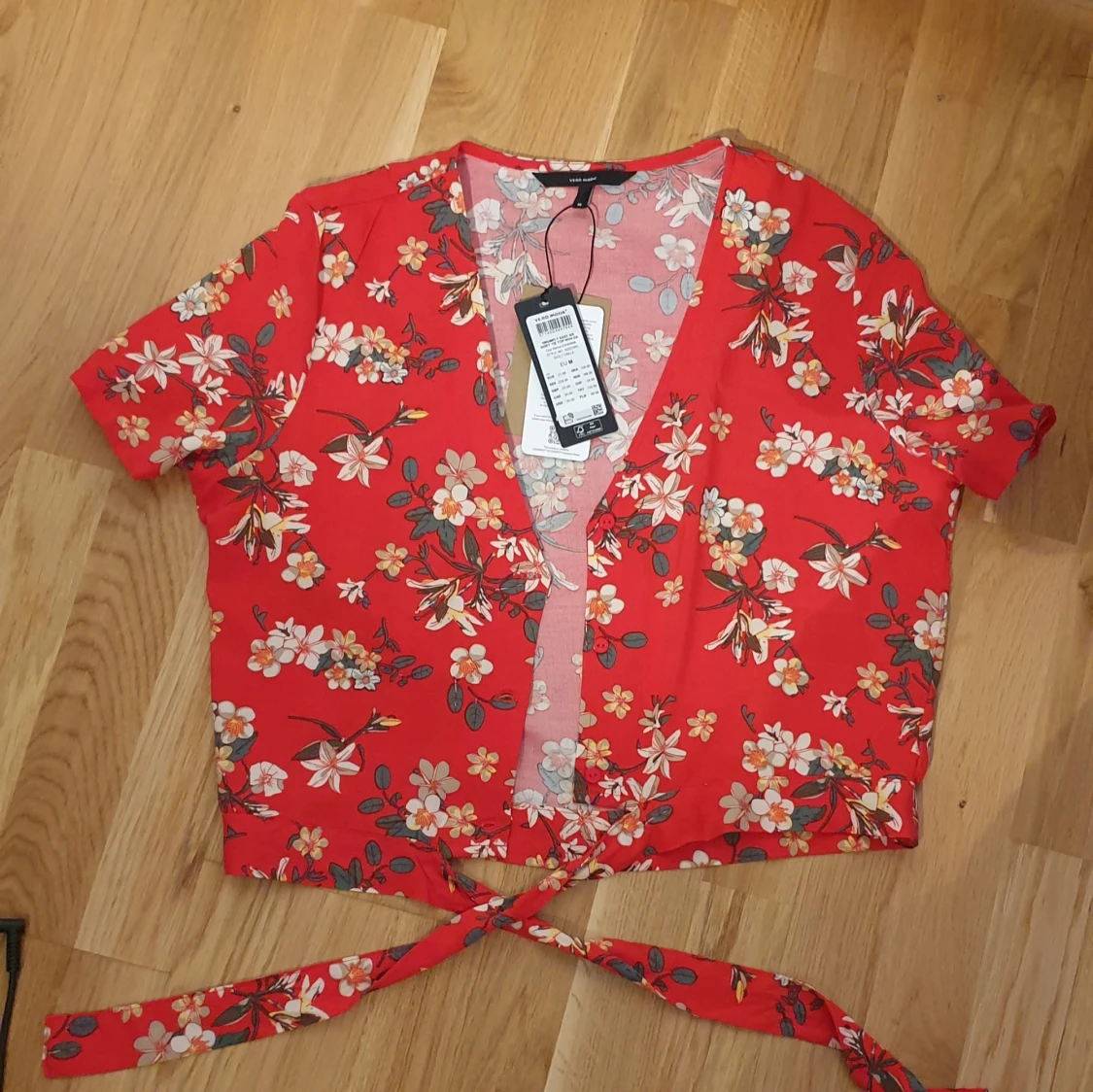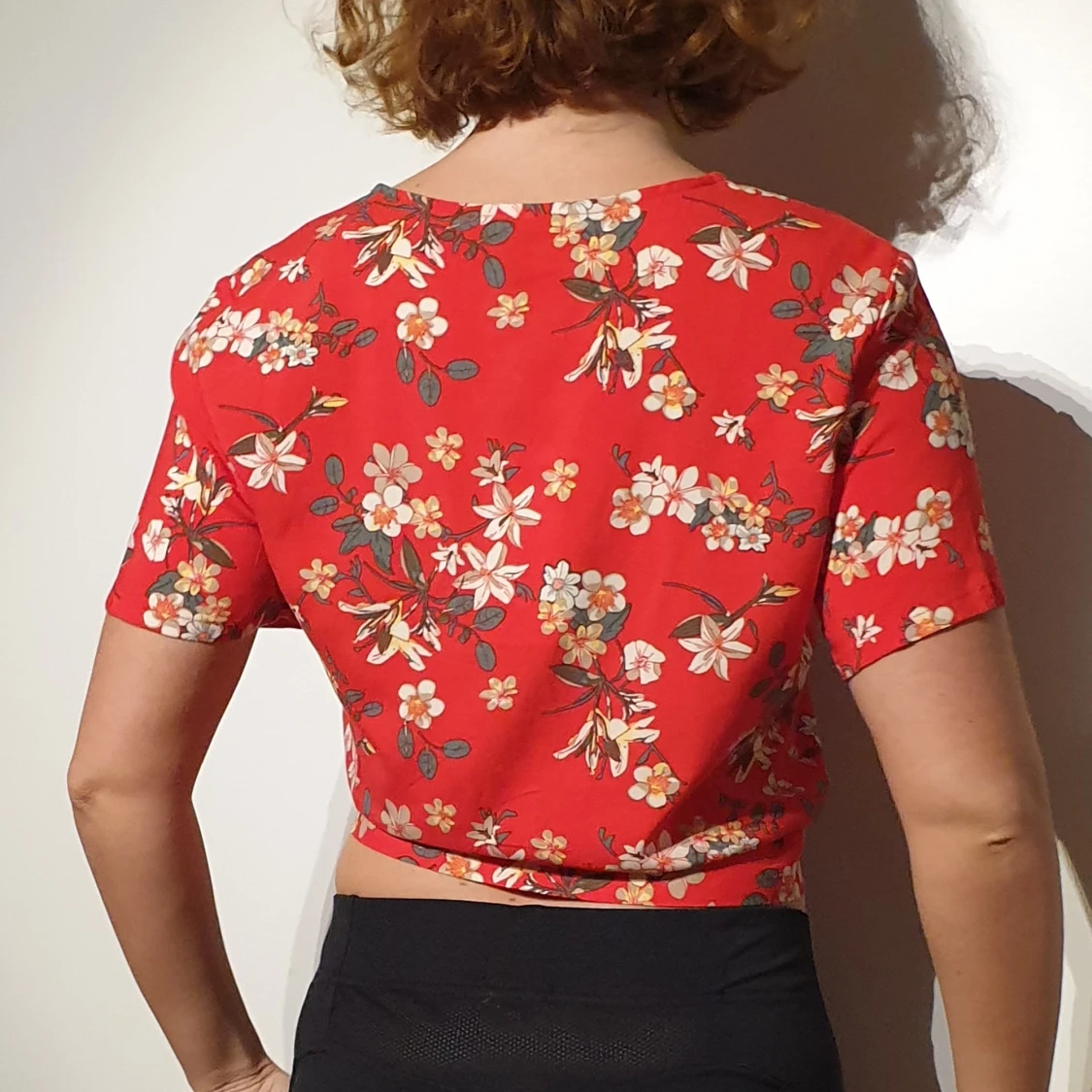 Oanvänd. Röd och vitblommig magtopp som knyts över magen, längd 45 cm. Material: Viskos. Frakt tillkommer på 48-51 kr ❣